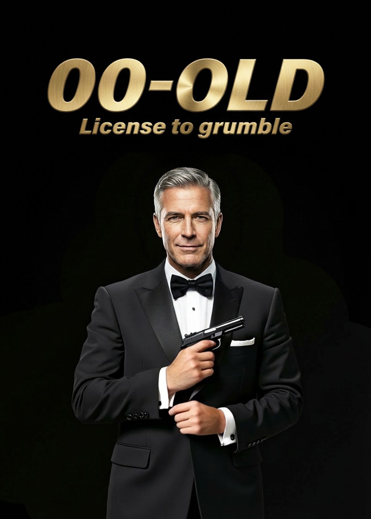 Less shaken, more creaky. Swap your face onto this tuxedoed silver fox and take your grumble-filled mission in style.