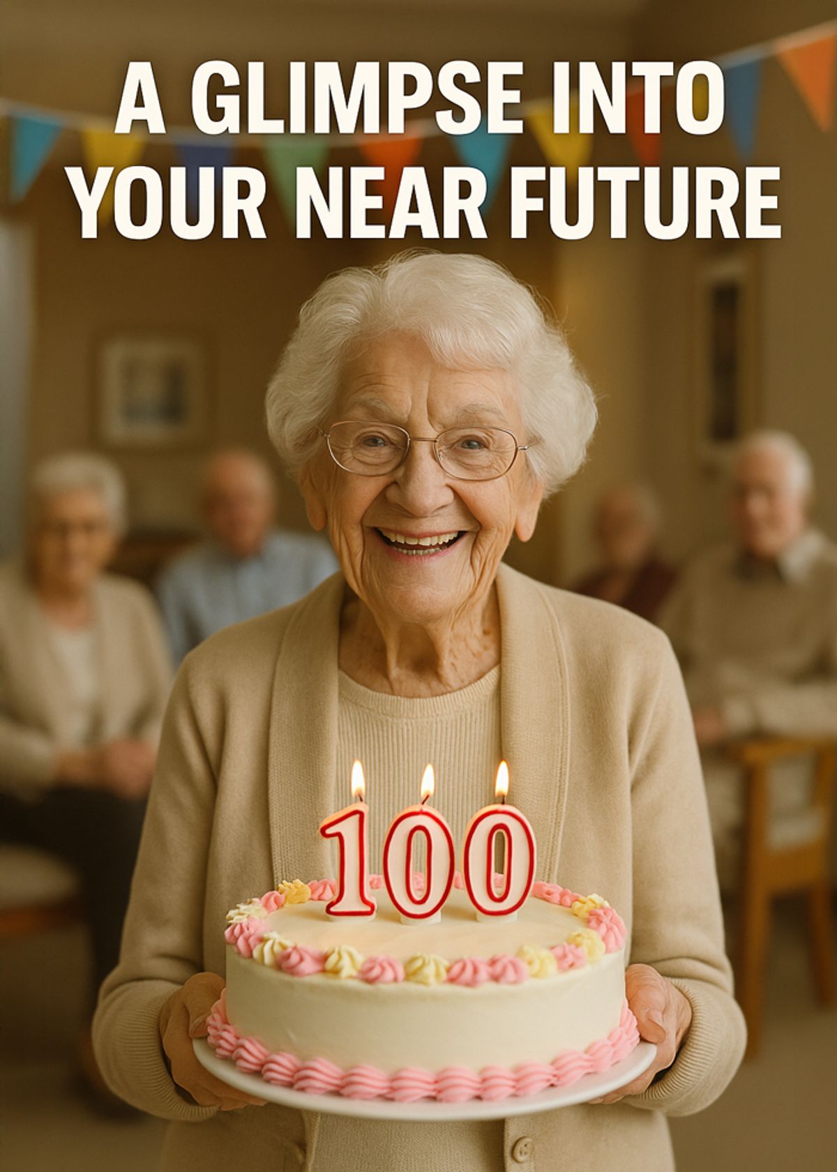 See your future in frosting. Swap your face onto this 100th birthday scene and celebrate the century mark decades early.