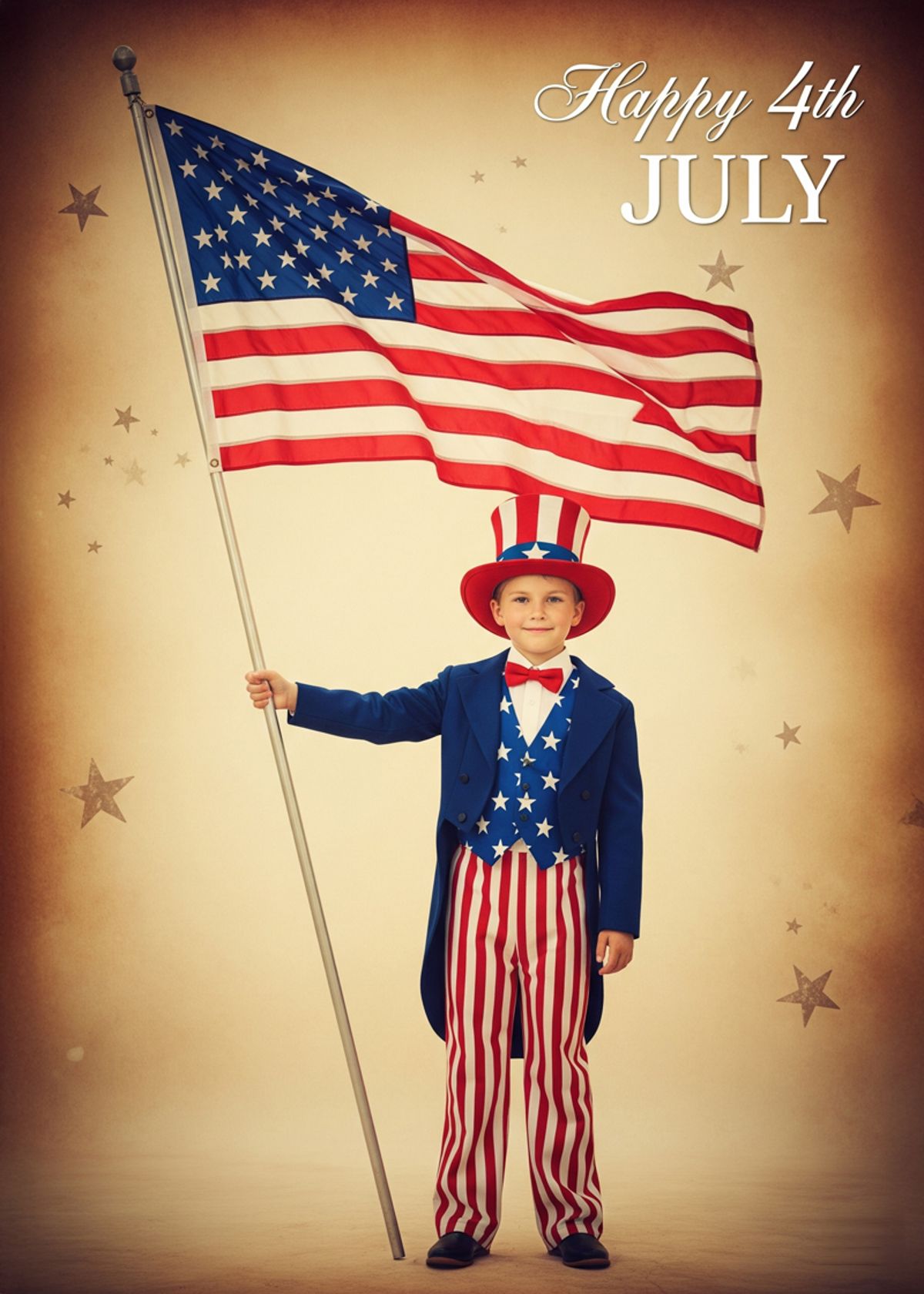 Red, white and all eyes on you. Swap your face onto this patriotic flag bearer and steal the Fourth of July spotlight.