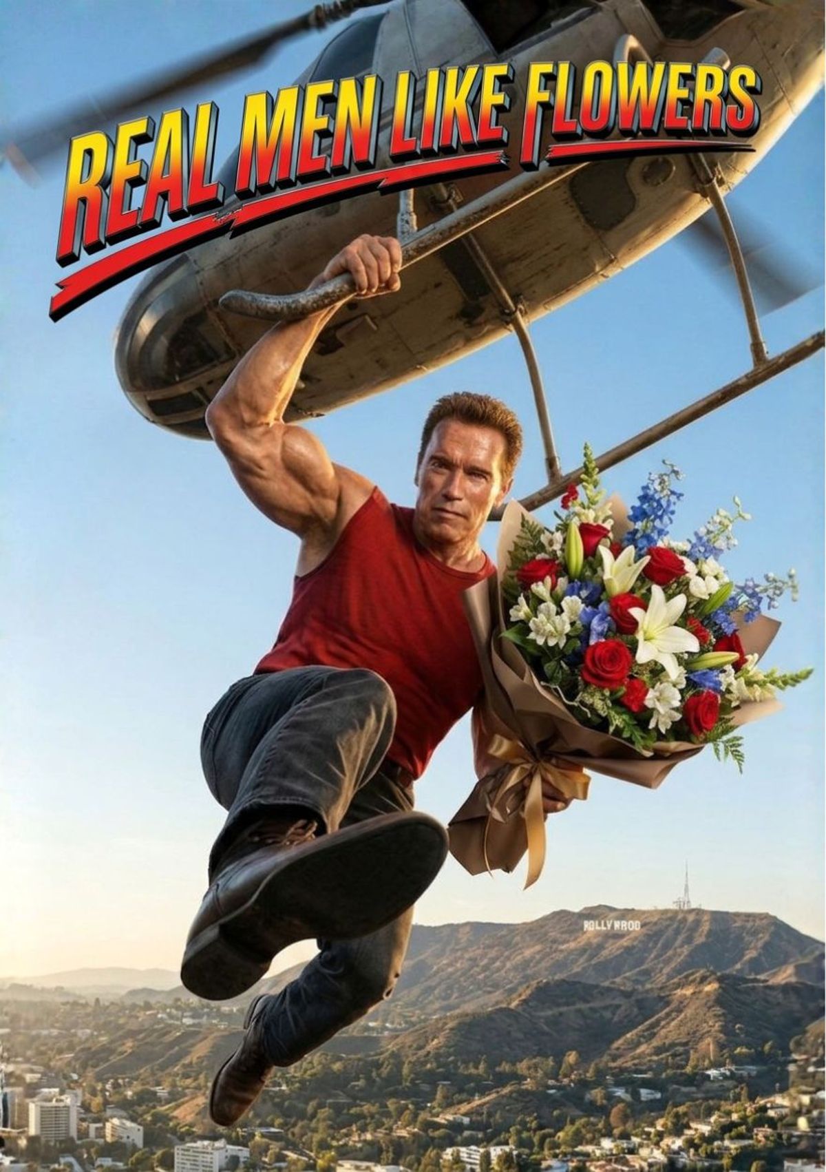 Big muscles, bigger romance. Swap your face onto this airborne action man and deliver flowers like an absolute legend.