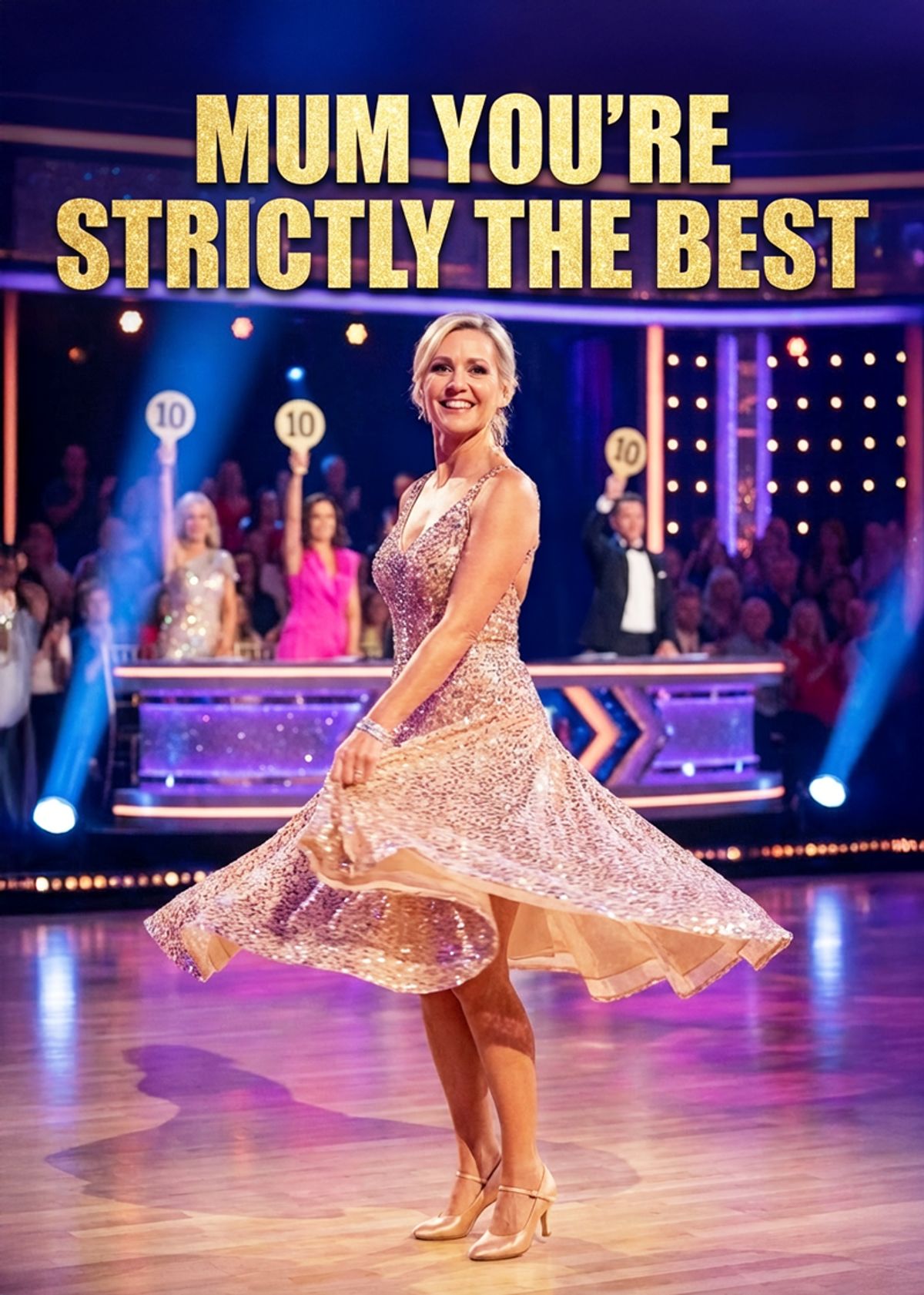 Give Mom her moment under the lights. Swap her face onto this dazzling ballroom star and watch the perfect tens fly up.