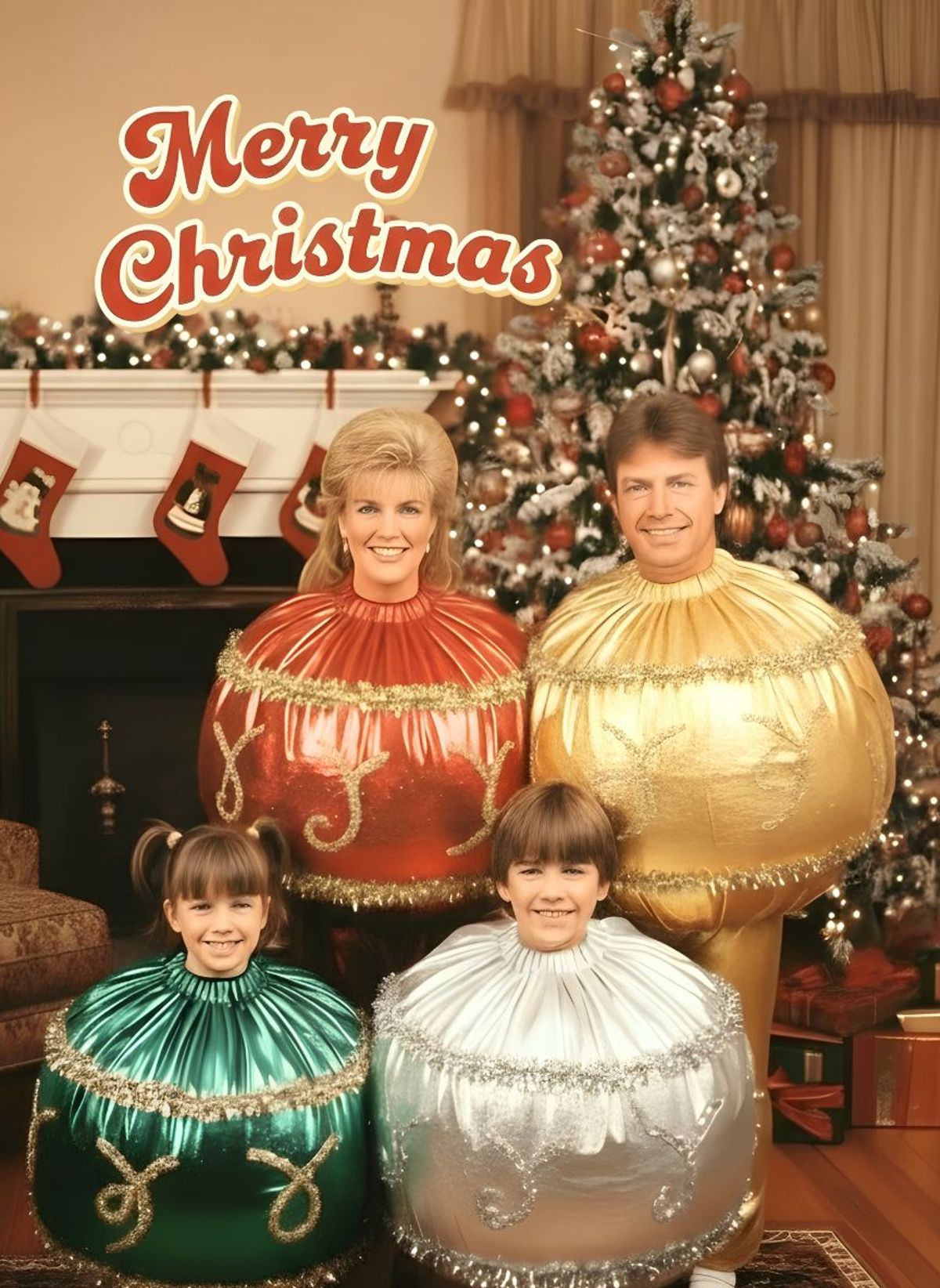 Turn your family into the brightest decorations of the season by swapping your faces into this delightfully daft Christmas bauble scene.