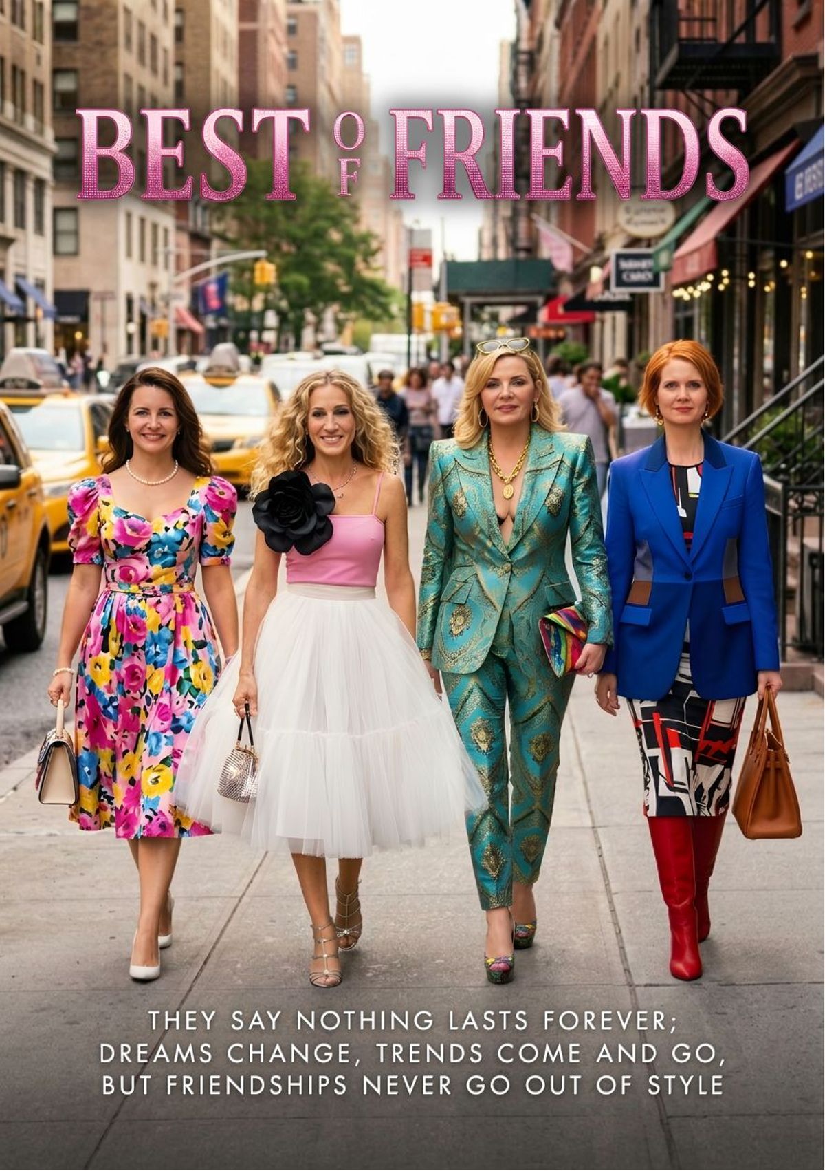 Four fabulous looks, one unforgettable entrance. Swap your faces into this stylish city scene and strut like friendship is always in fashion.