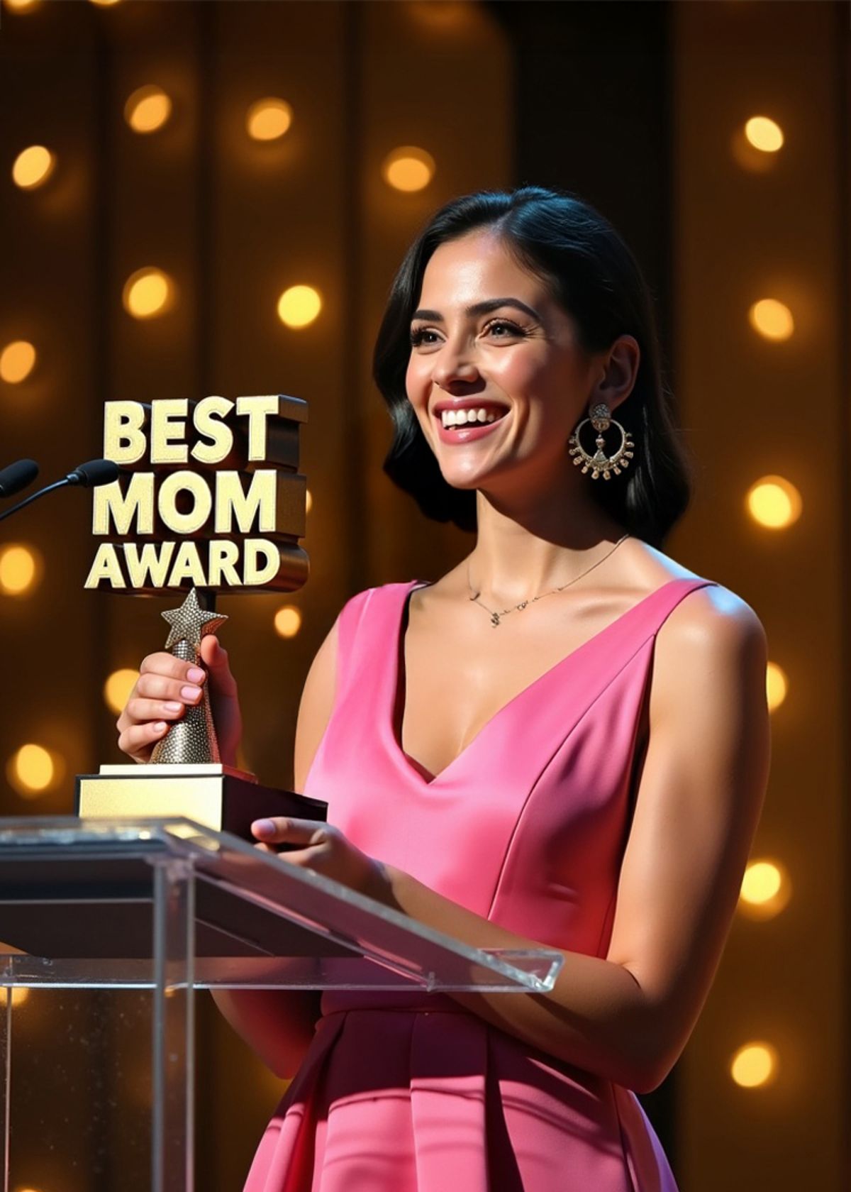 Make your acceptance speech count. Swap your face into this sparkling Best Mom Award moment and soak up the applause like the headline act you are.