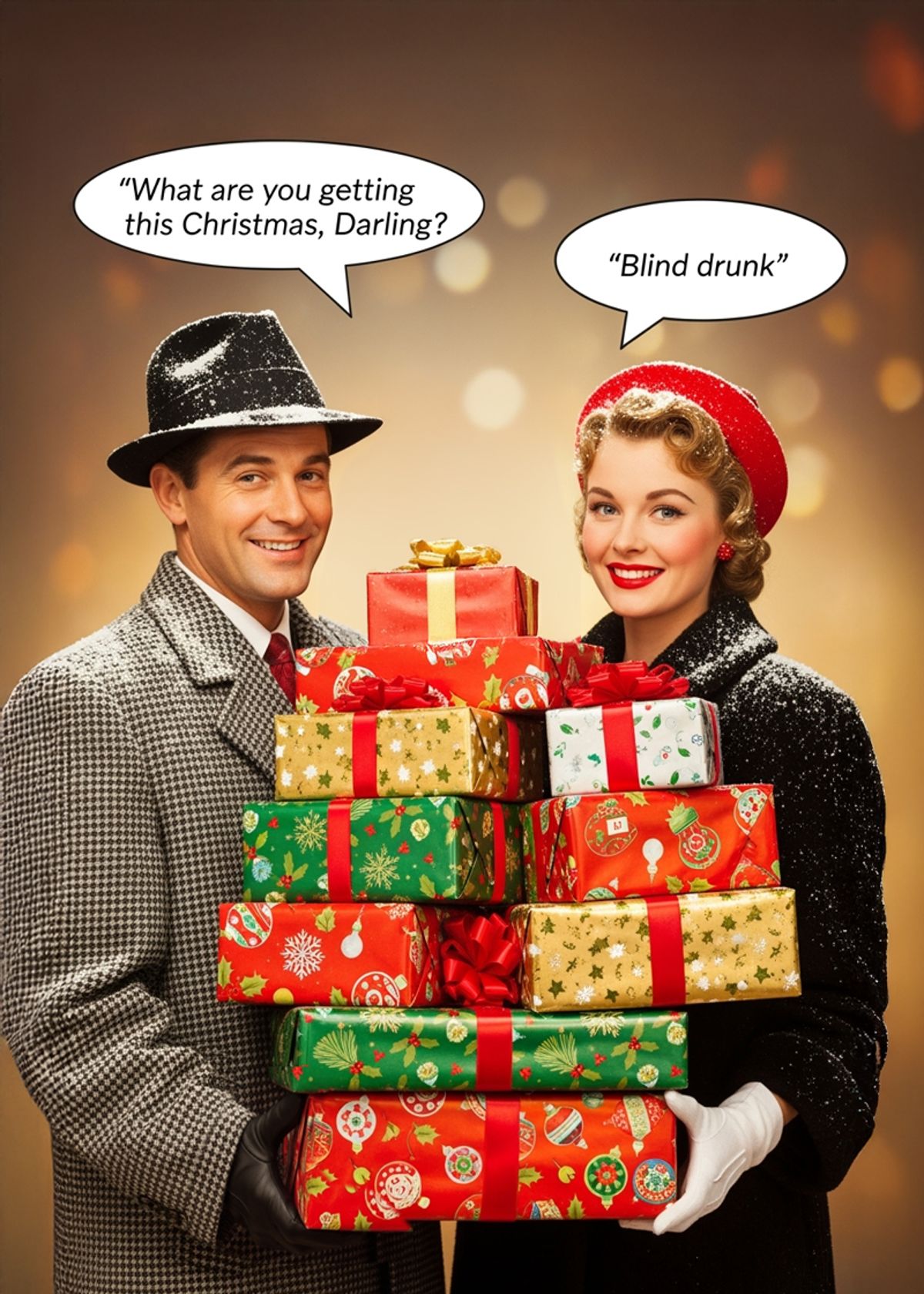 Swap your faces into this vintage Christmas scene and deliver festive charm with a wicked little punchline.