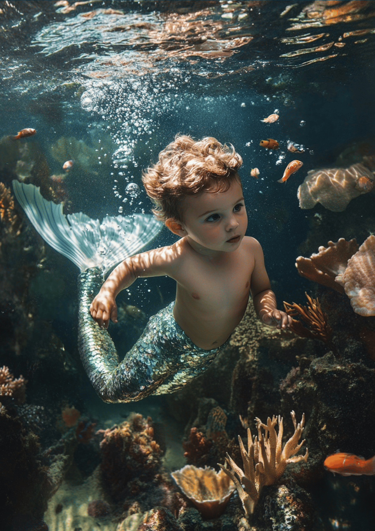Swap your face onto this shimmering mermaid scene and make a splash in your own underwater fairytale.