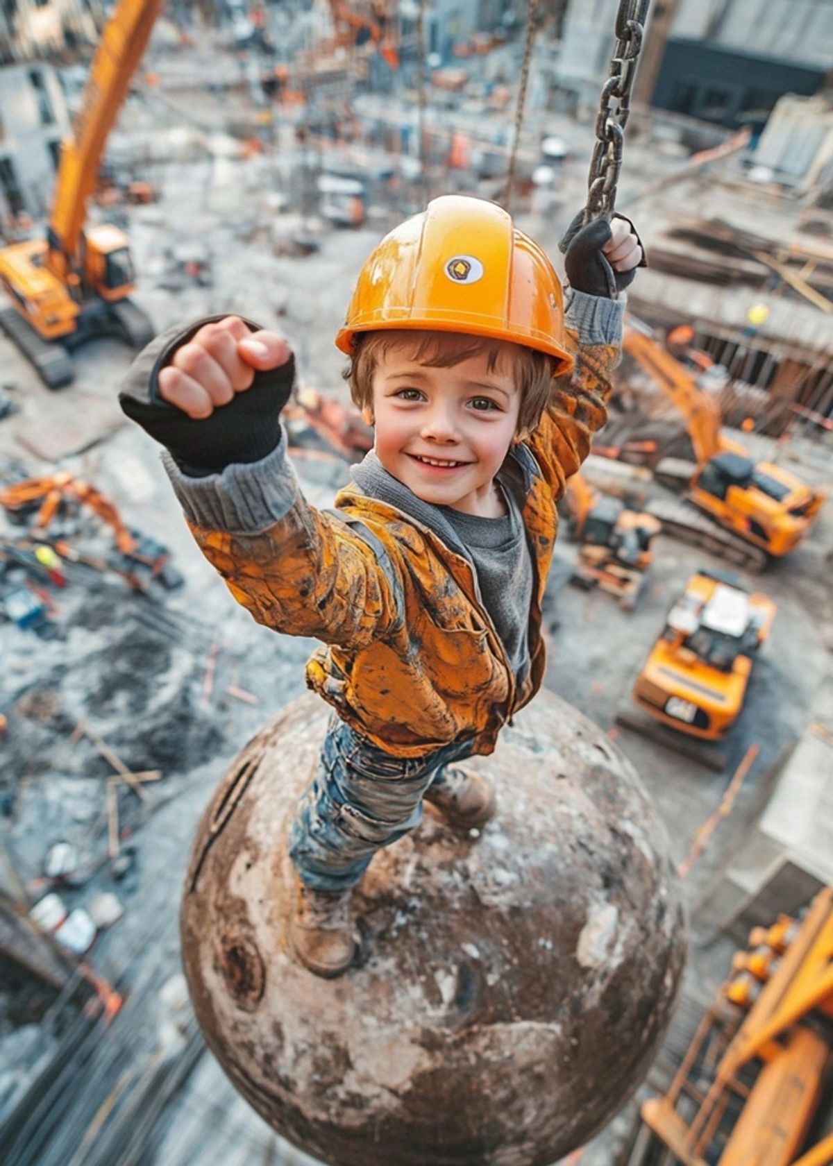 Hard hat on, hero mode activated. Swap your face onto this fearless little builder and take over the site from the top of the wrecking ball.