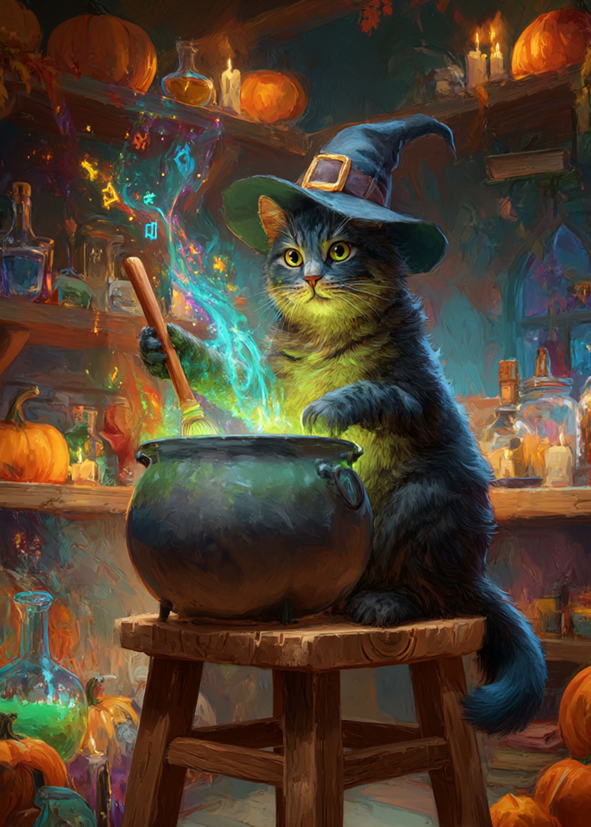 Pop your pet into this bubbling cauldron scene and let them brew up maximum mischief in full witchy glory.