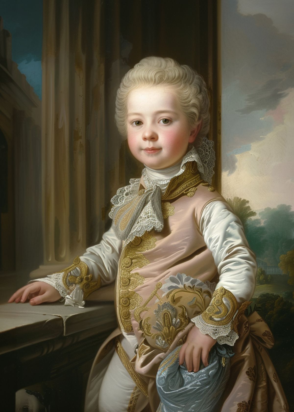 Swap your face into this lavish young aristocrat portrait and look like you were born to inherit the estate.