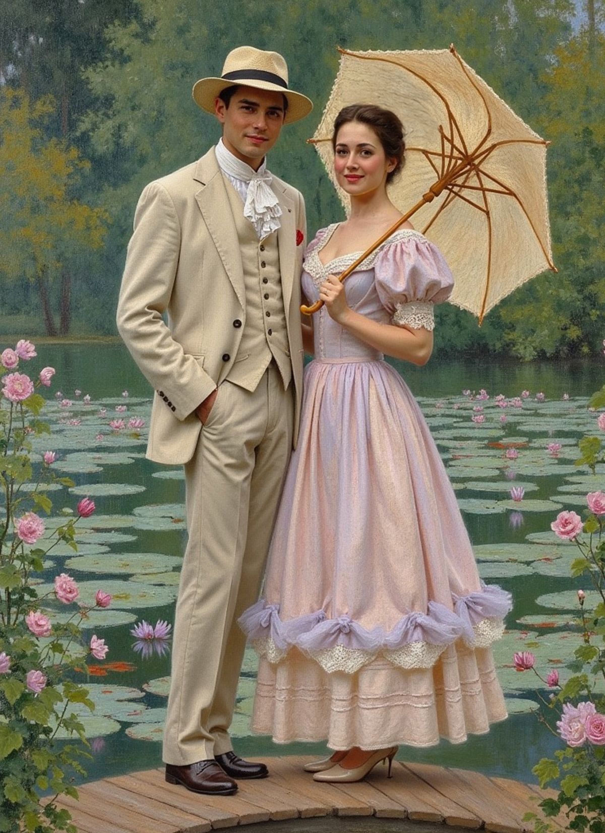 Trade modern life for lakeside charm. Swap your face into this dreamy vintage couple scene and step straight into a painted love story.