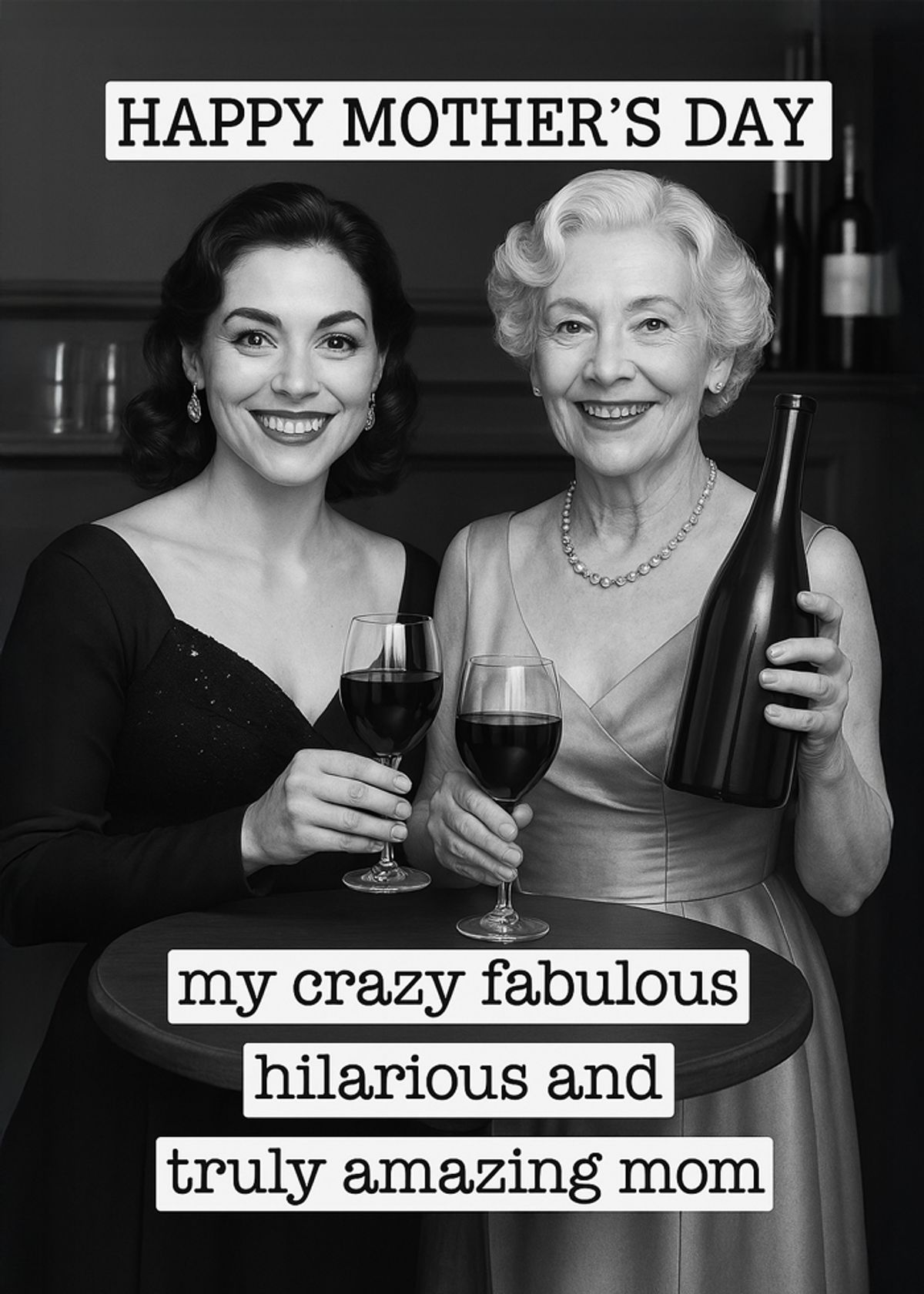 Swap your face into this Mother's Day wine-night scene and give Mom a tribute as fabulous, hilarious, and well deserved as she is.