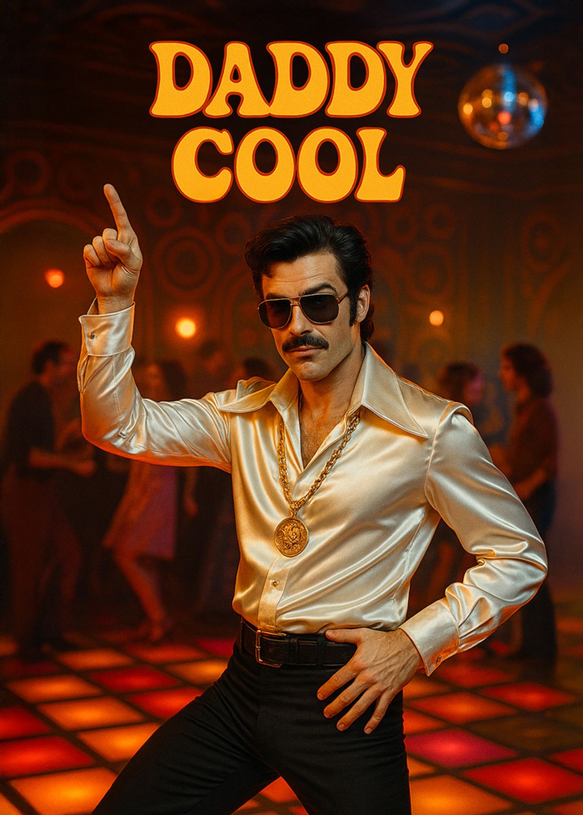 Swap your face onto this slick disco dancer and hit the floor with outrageous swagger, satin shine and zero shame.