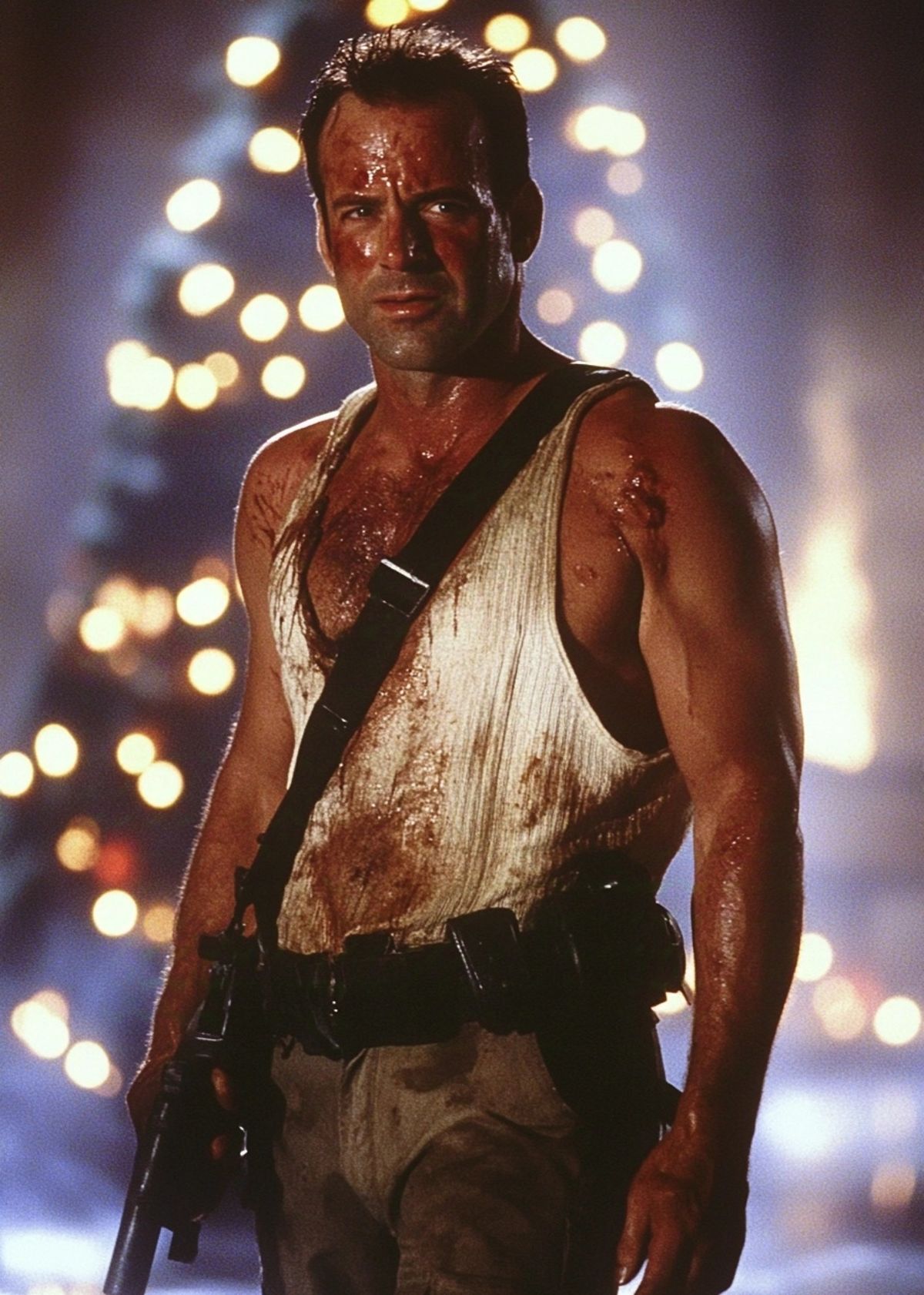 Bloodied, sweaty, and somehow still standing, swap your face onto this battered action hero and steal the scene with pure last-one-left energy.
