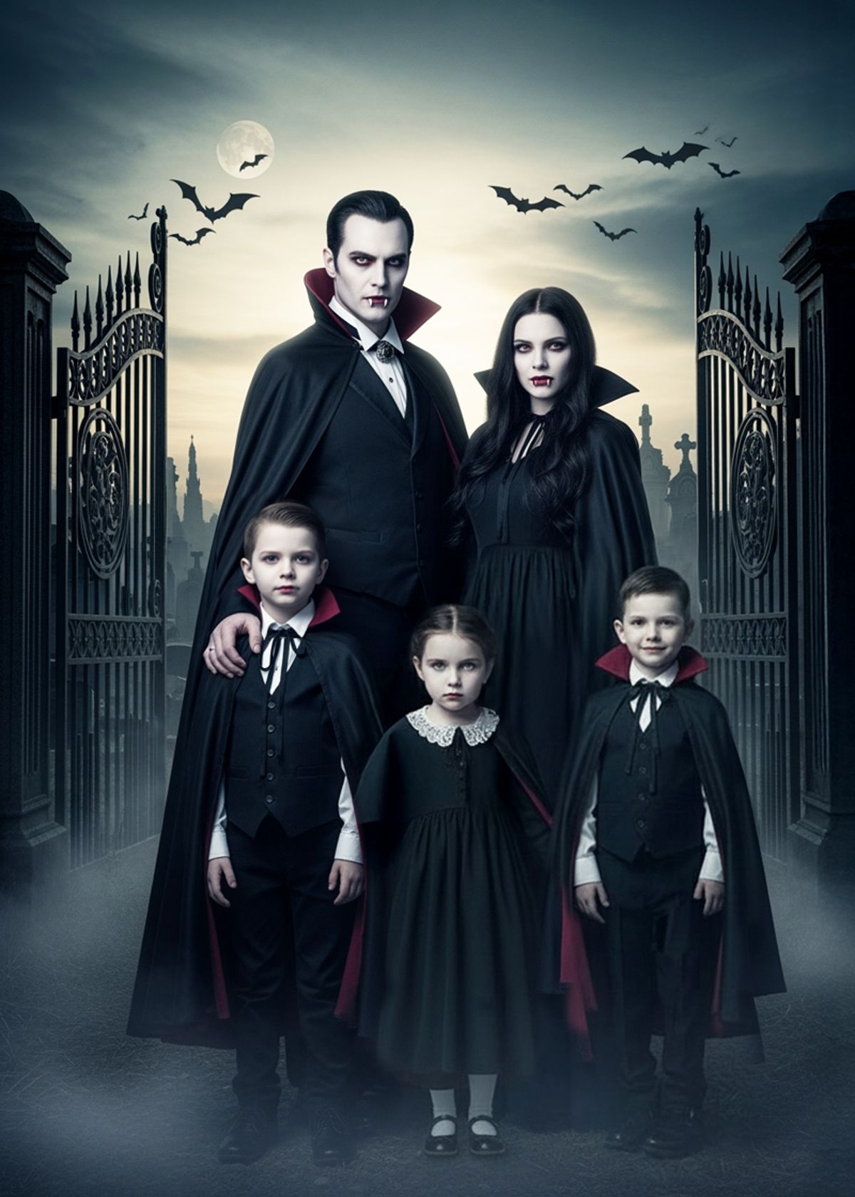 Sink your teeth into something unforgettable. Swap your family’s faces onto this eerie vampire clan and rule the night in gothic style.