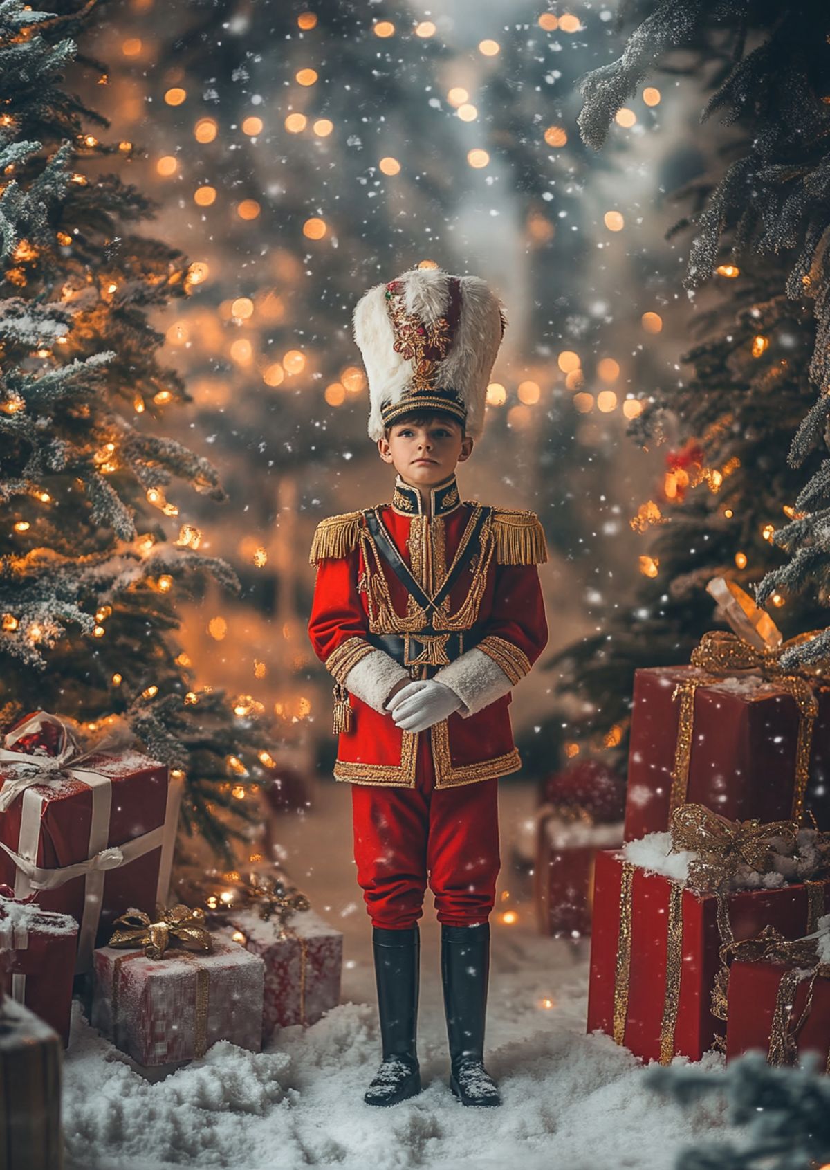 March into the festivities by swapping your face onto this elegant toy soldier and stealing the spotlight beneath the tree.