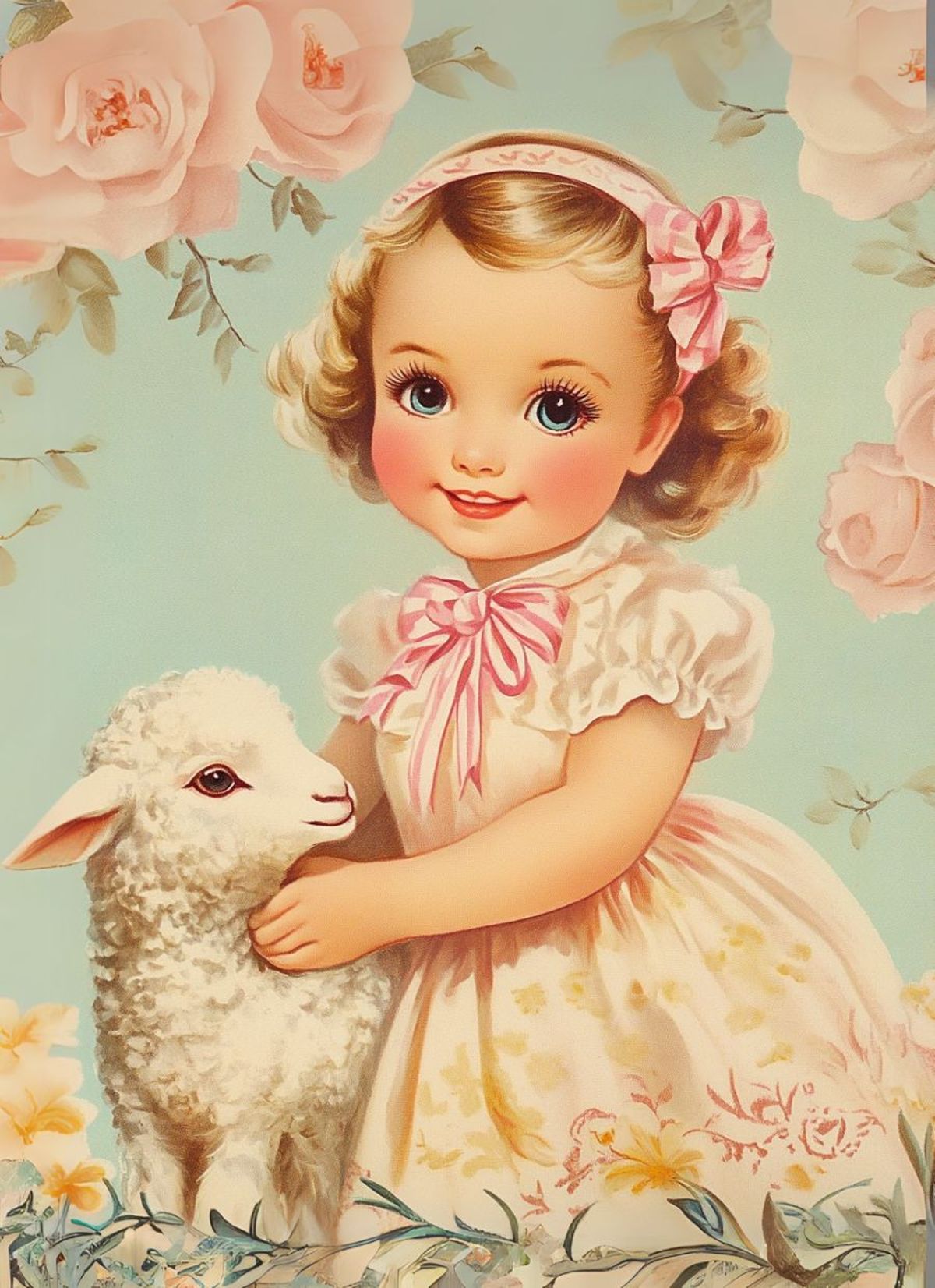 Sugar, roses, and your face come together in this sweet doll portrait with a lamb and enough storybook charm to melt hearts on sight.