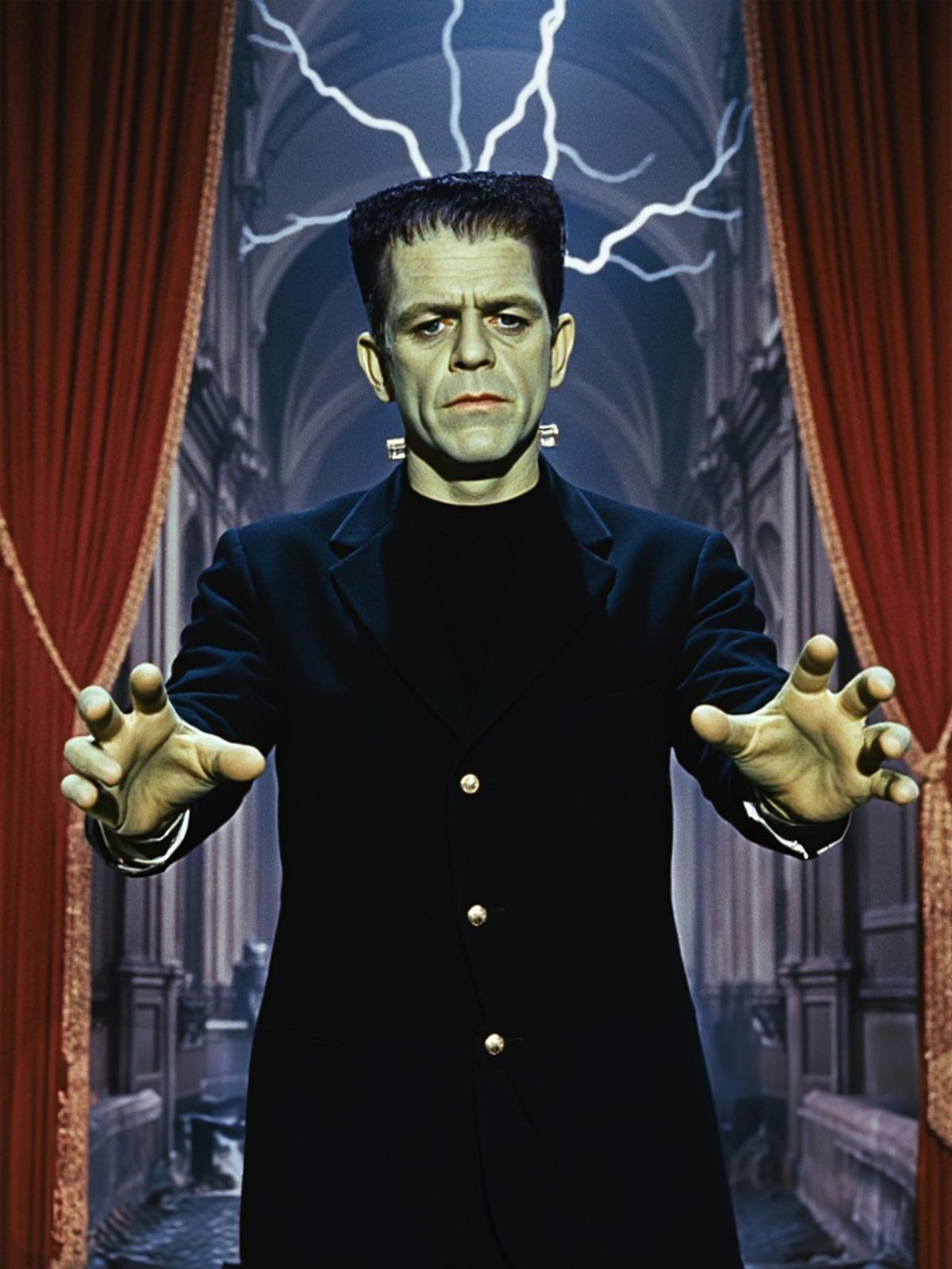 Bring your best deadpan and swap your face onto this thunder-charged monster for a gloriously gothic entrance.