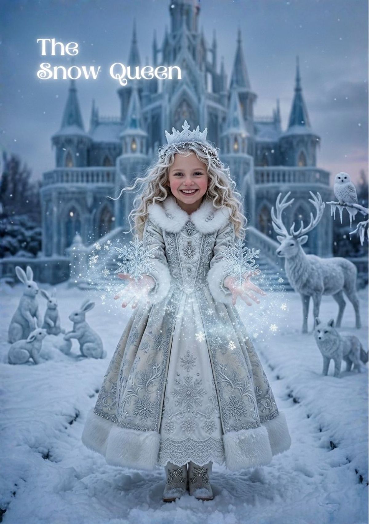 Swap your face onto this sparkling snow queen scene and rule a frosty fairytale kingdom in style.