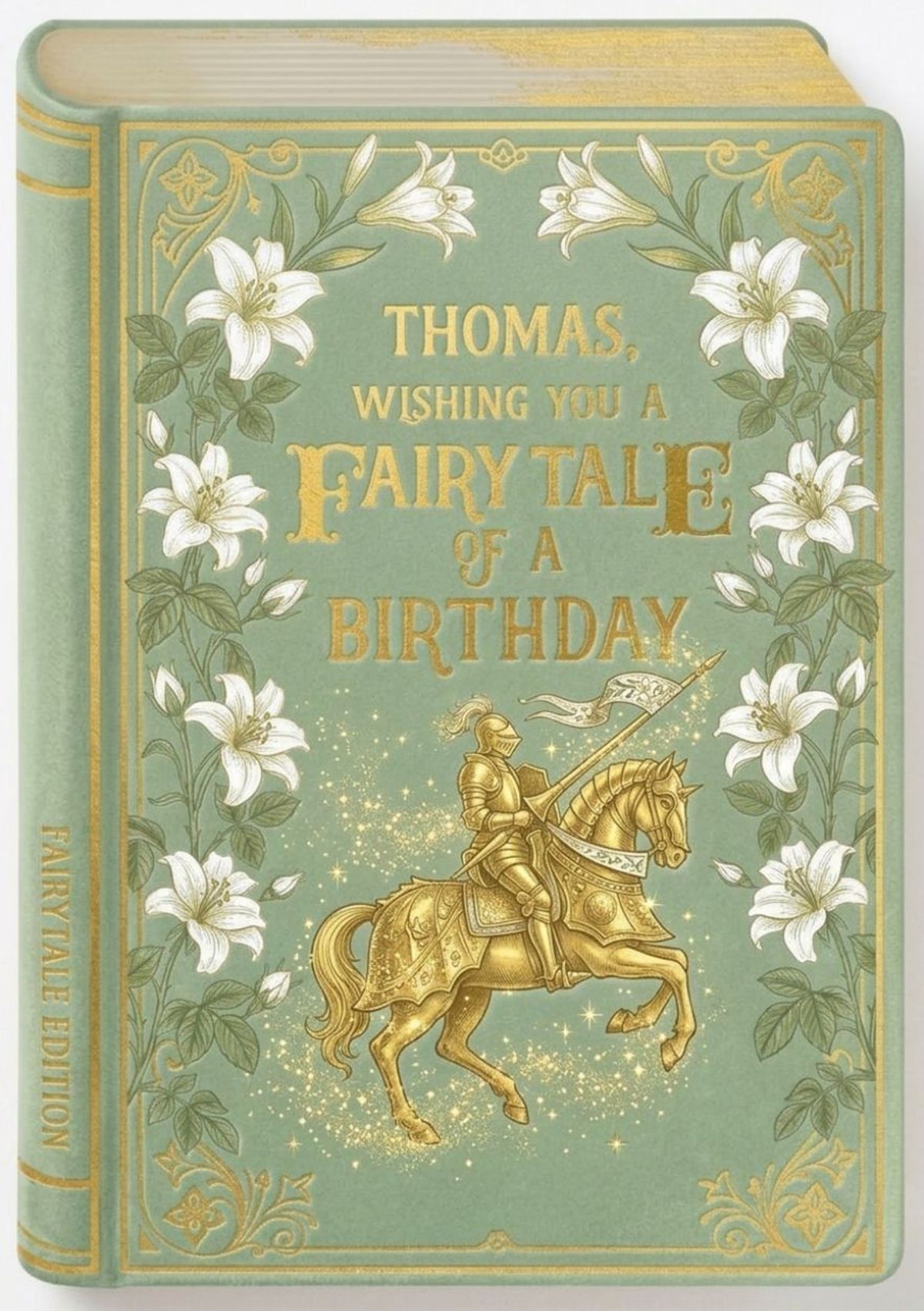 Swap your face onto this golden storybook knight and gallop into their birthday like the hero of your own fairy tale.