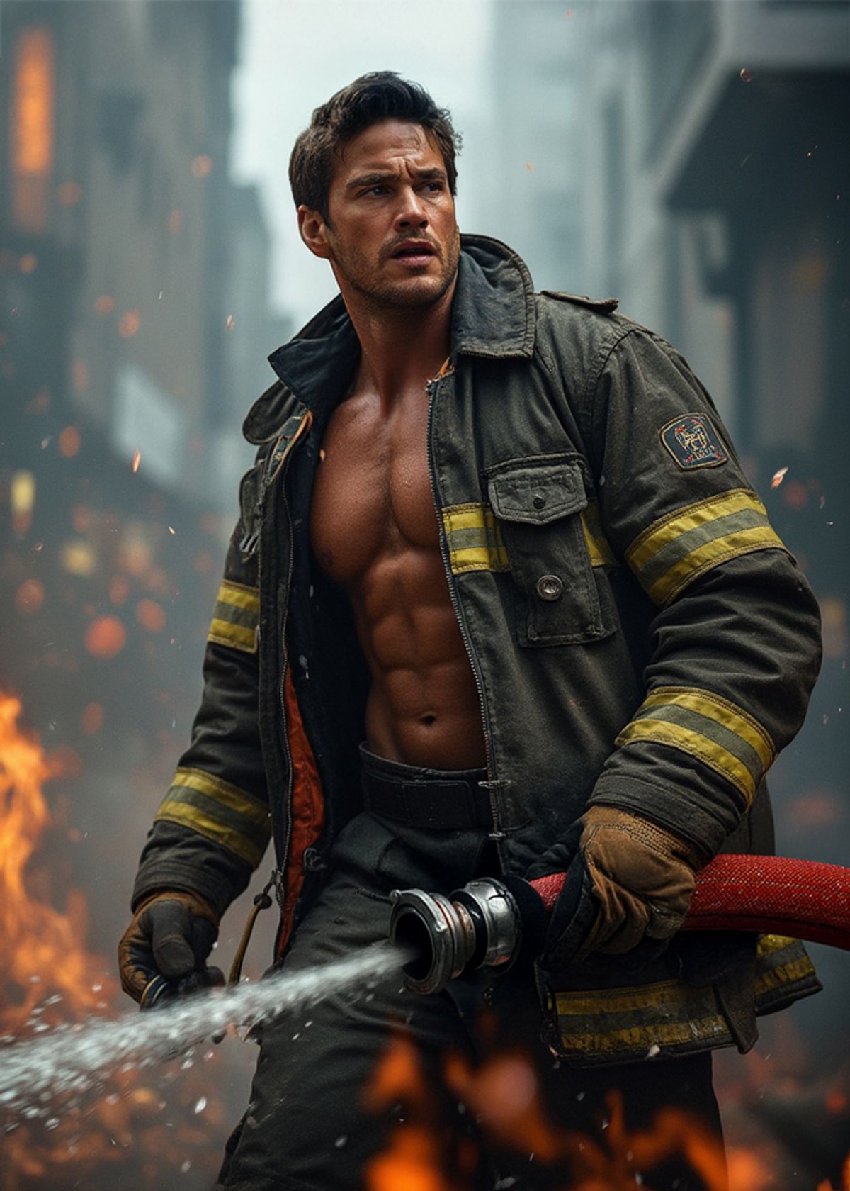 Turn up the heat by swapping your face onto this fearless firefighter and stride through the flames like the city's hottest hero.
