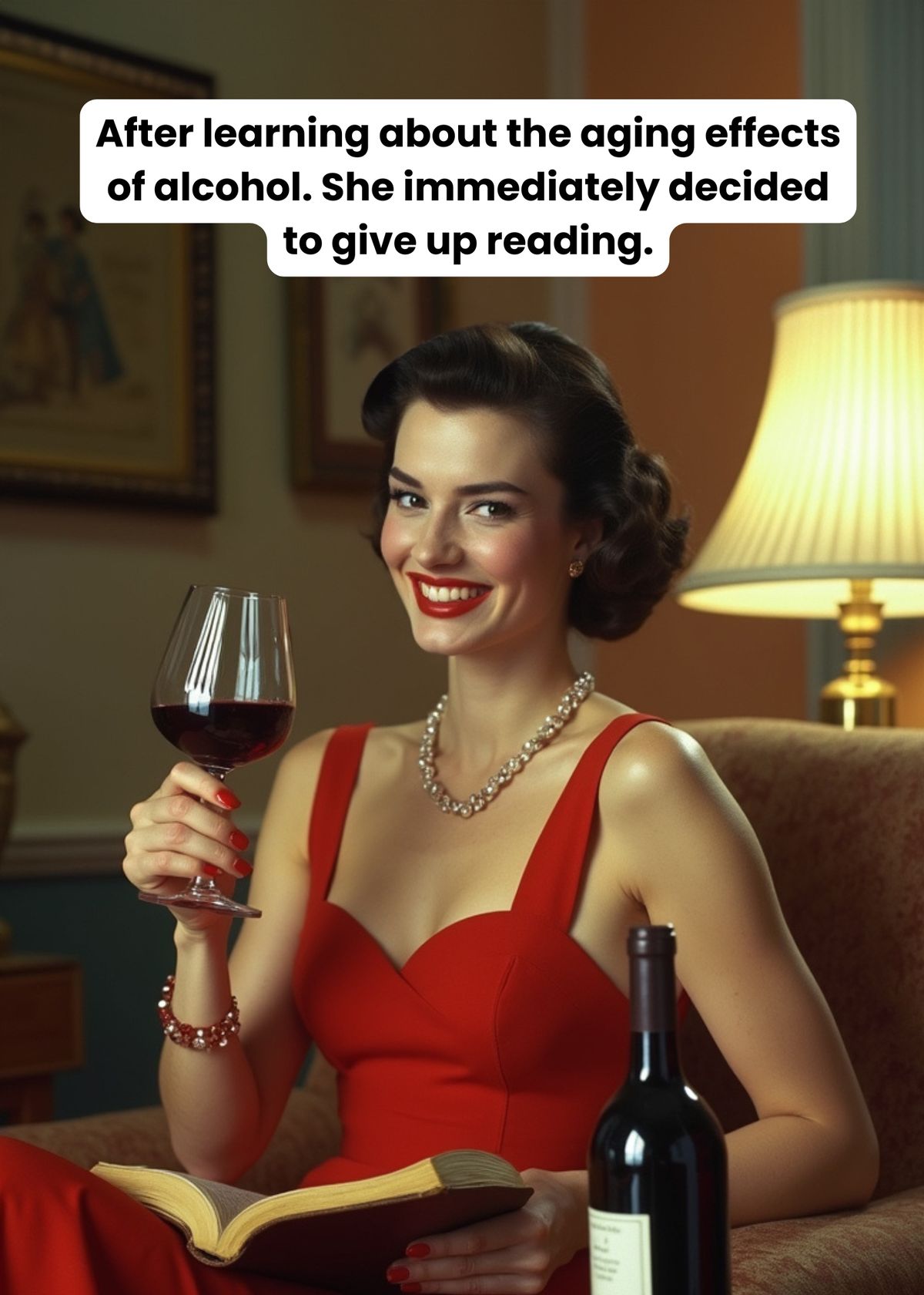 Swap your face onto this glam wine-loving bookworm and serve up the kind of joke that deserves a second glass.