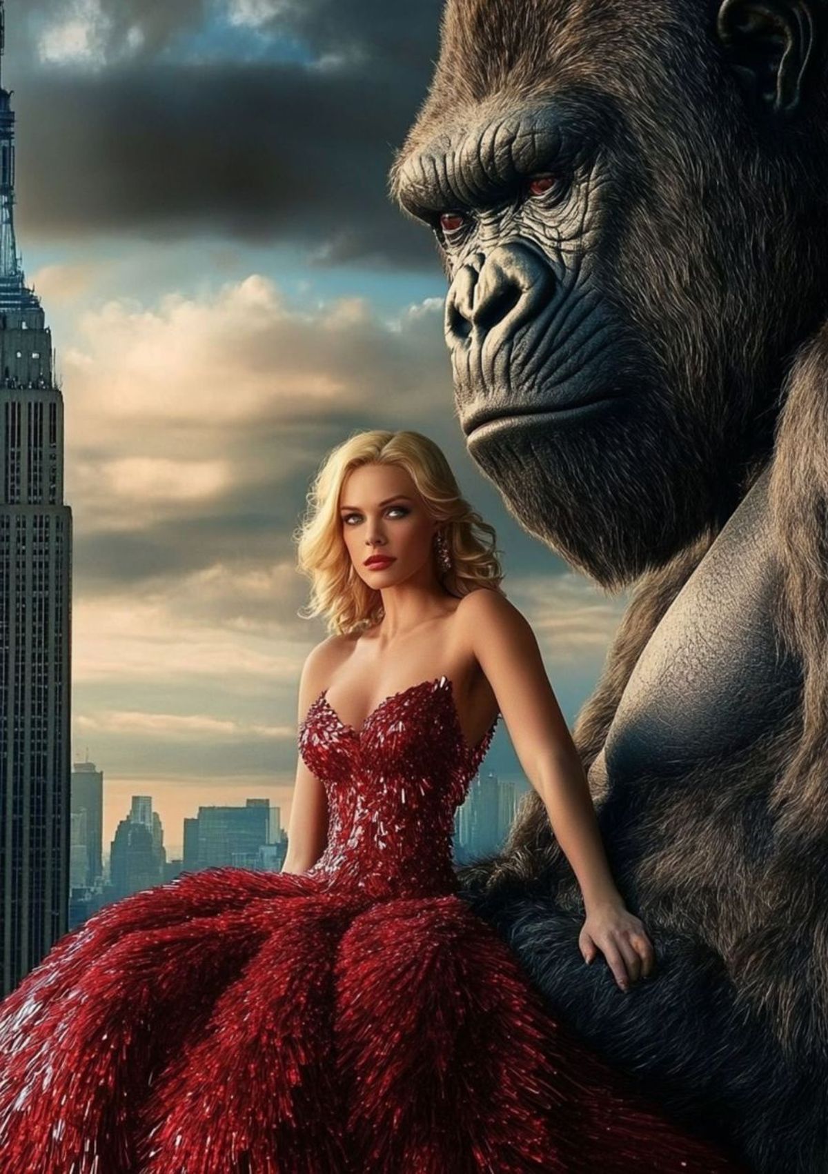 Swap your face onto this dazzling city diva and make your entrance with one very large admirer by your side.