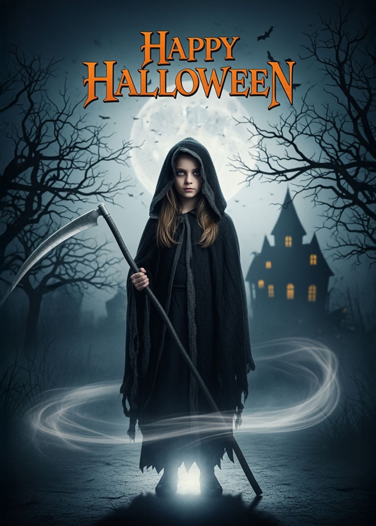 Cloak yourself in moonlit menace and swap your face onto this eerie Halloween reaper scene to rule the night.