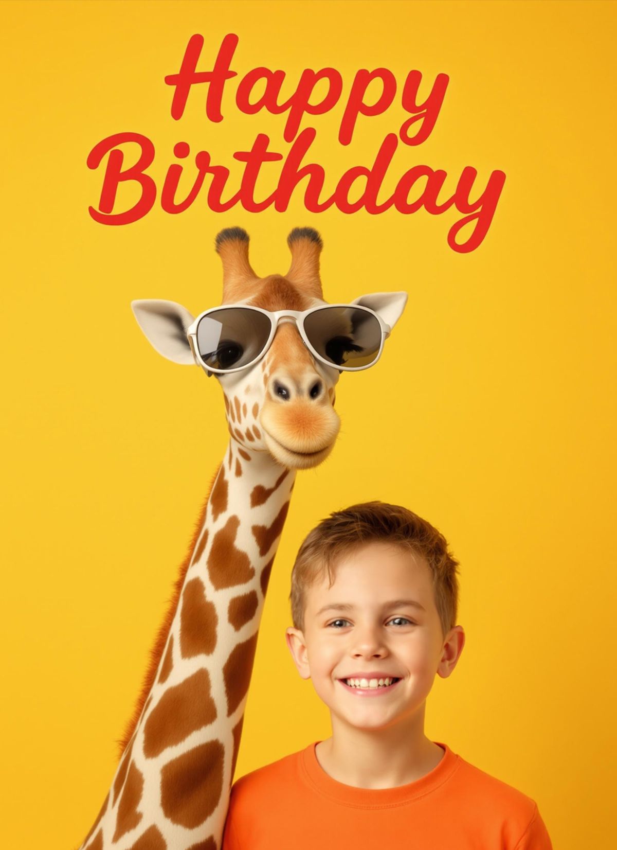 Long neck, big laughs. Swap your face into this giraffe birthday scene and make their big day wildly unforgettable.