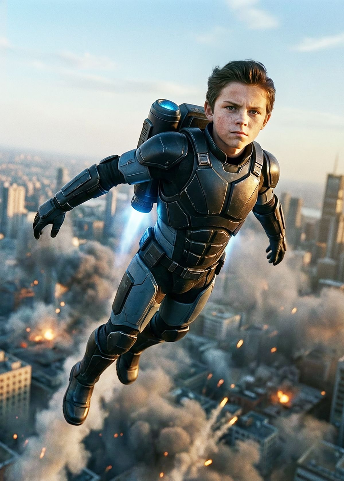 Suit up and swap your face onto this high-flying hero for a personalized action shot that looks ready to save the city.