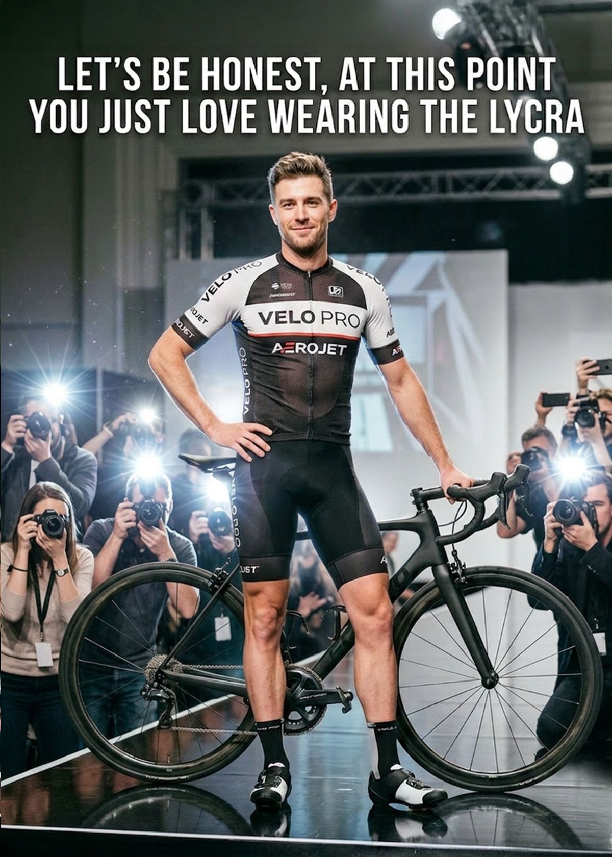 Put your face on this camera-loving cyclist and strut straight into your lycra era like the spotlight was built for you.