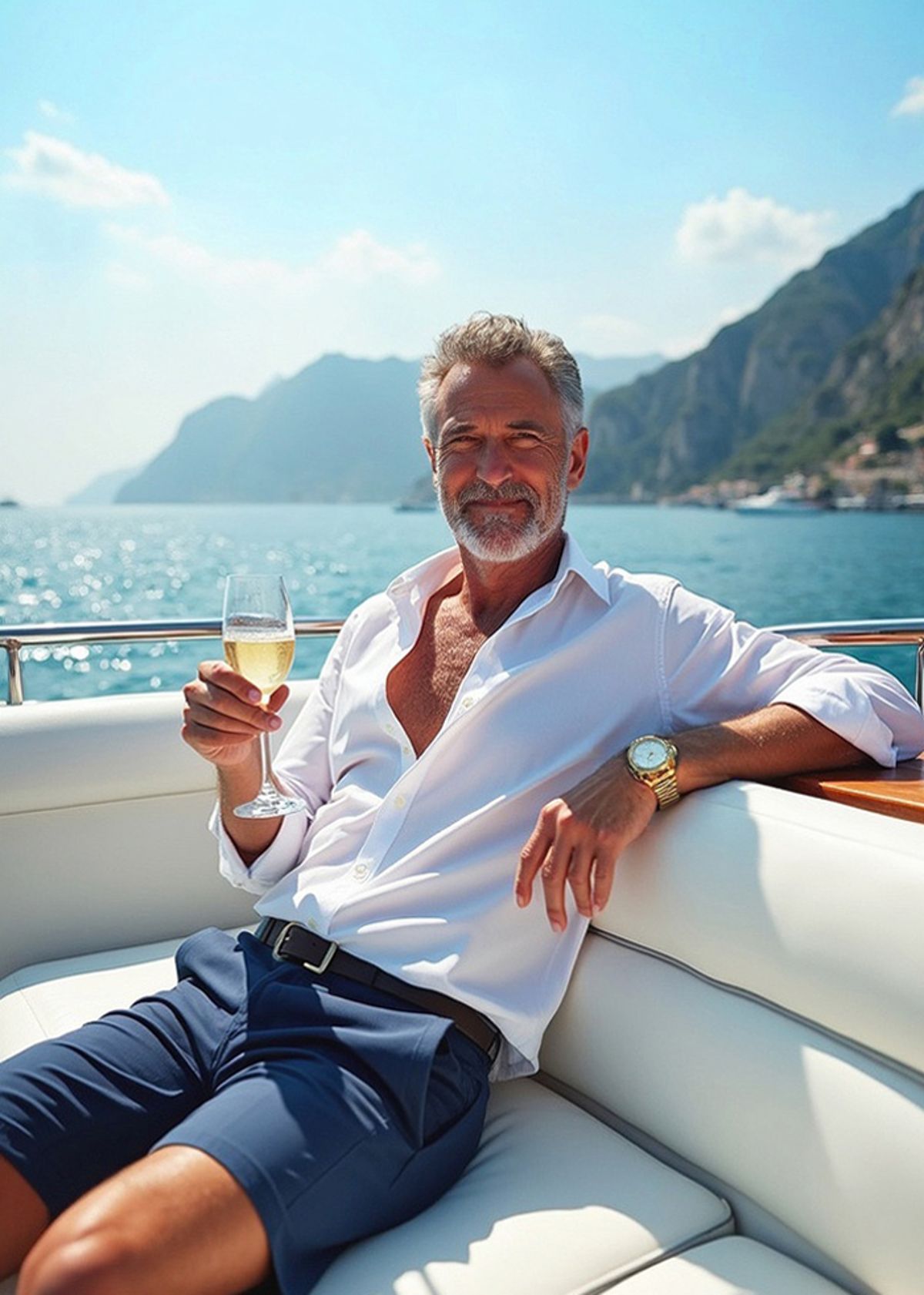Sun, sea, and serious main-character money. Swap your face onto this yacht-lounging scene and sail straight into the good life.