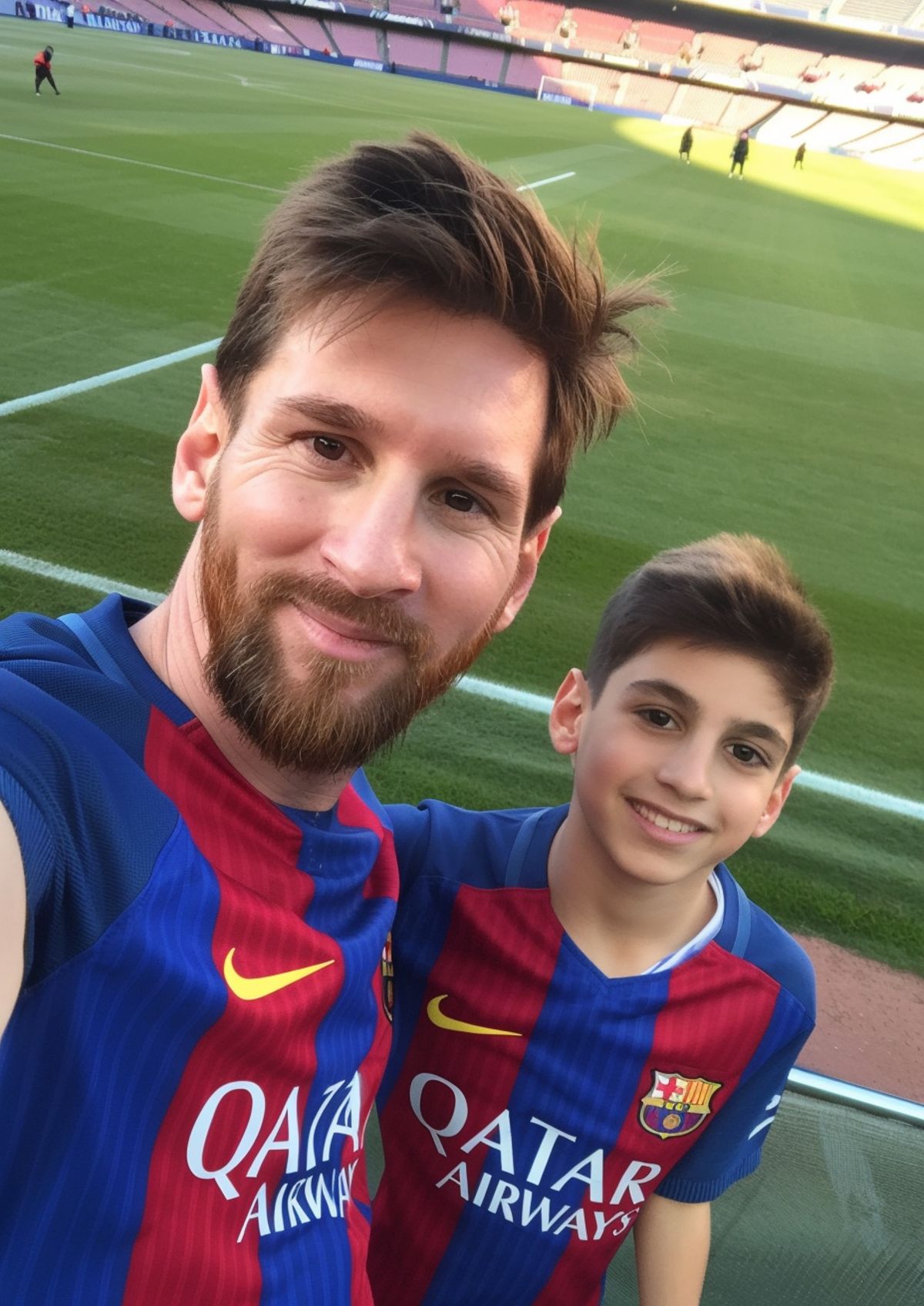 Straight to the camera roll hall of fame. Swap your face into a pitchside selfie with Lionel Messi and make it look like you were there for the big day.