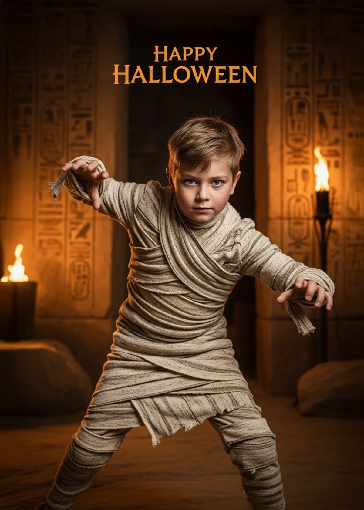 Unleash your inner mummy. Swap your face into this spooky Halloween scene and steal the night straight from the tomb.