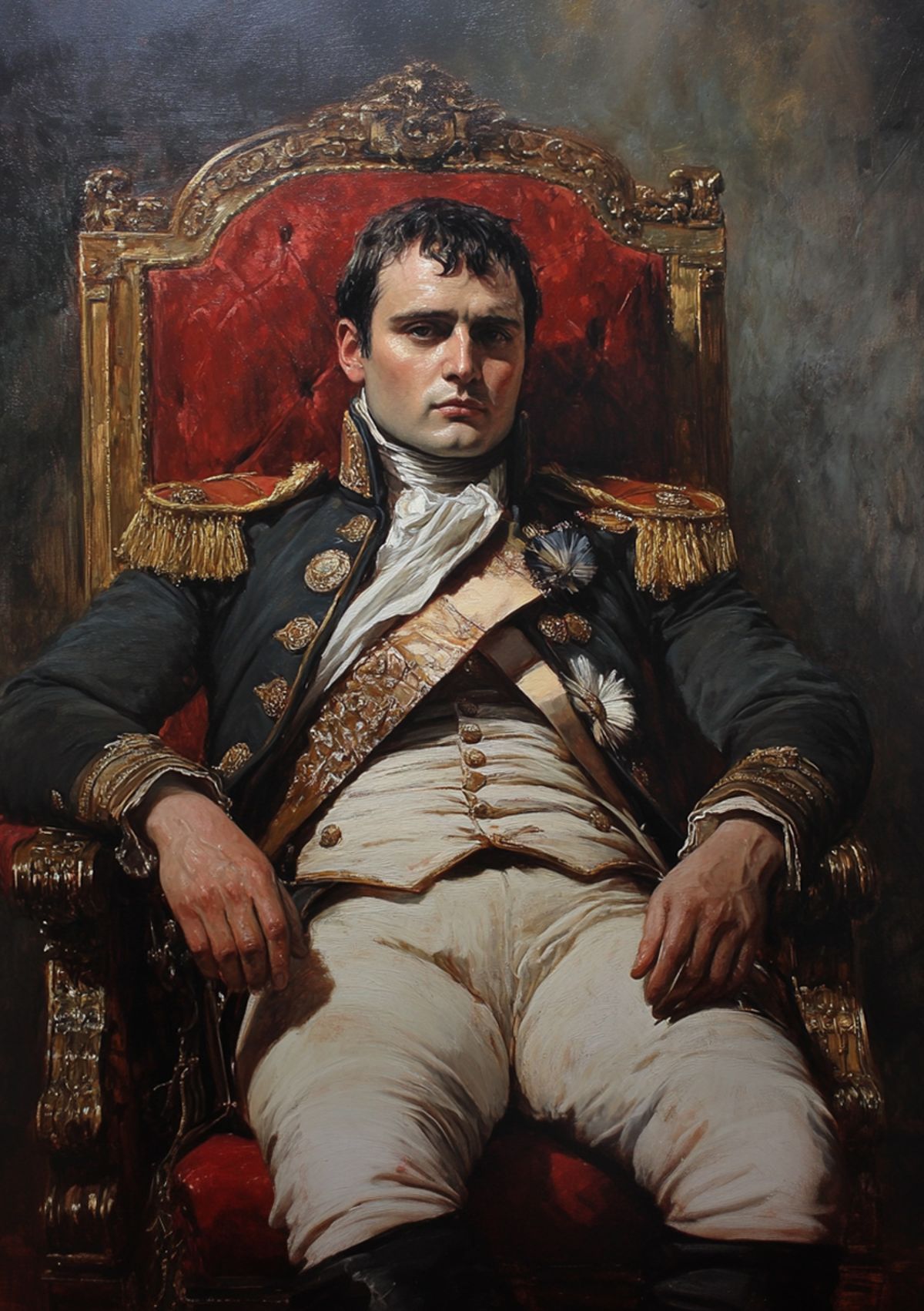 Conquer the room. Swap your face onto Napoleon's throne portrait and serve pure imperial confidence without saying a word.