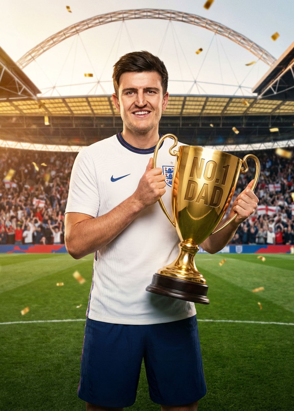 Give Dad the stadium roar he deserves. Swap his face onto a trophy-lifting football hero and crown him No.1 in style.