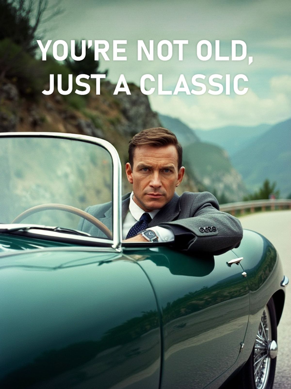 Swap your face into this sharp vintage car scene and wear every birthday like a badge of timeless style.