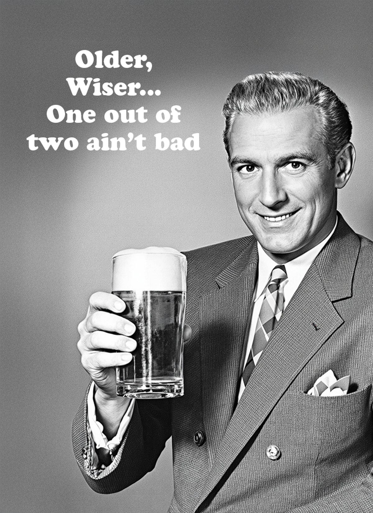 Swap your face onto this vintage beer-sipping gent and raise a glass to getting older, if not necessarily wiser.