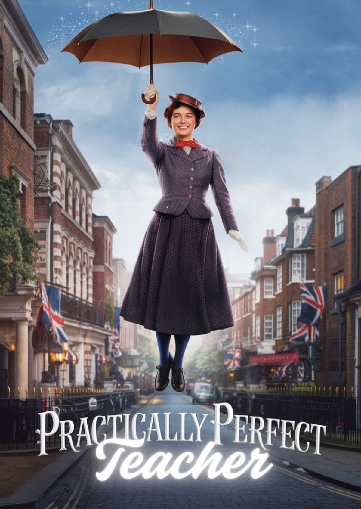 Class just got a little more magical. Swap your face onto this umbrella-floating teacher and make your entrance with sky-high charm.