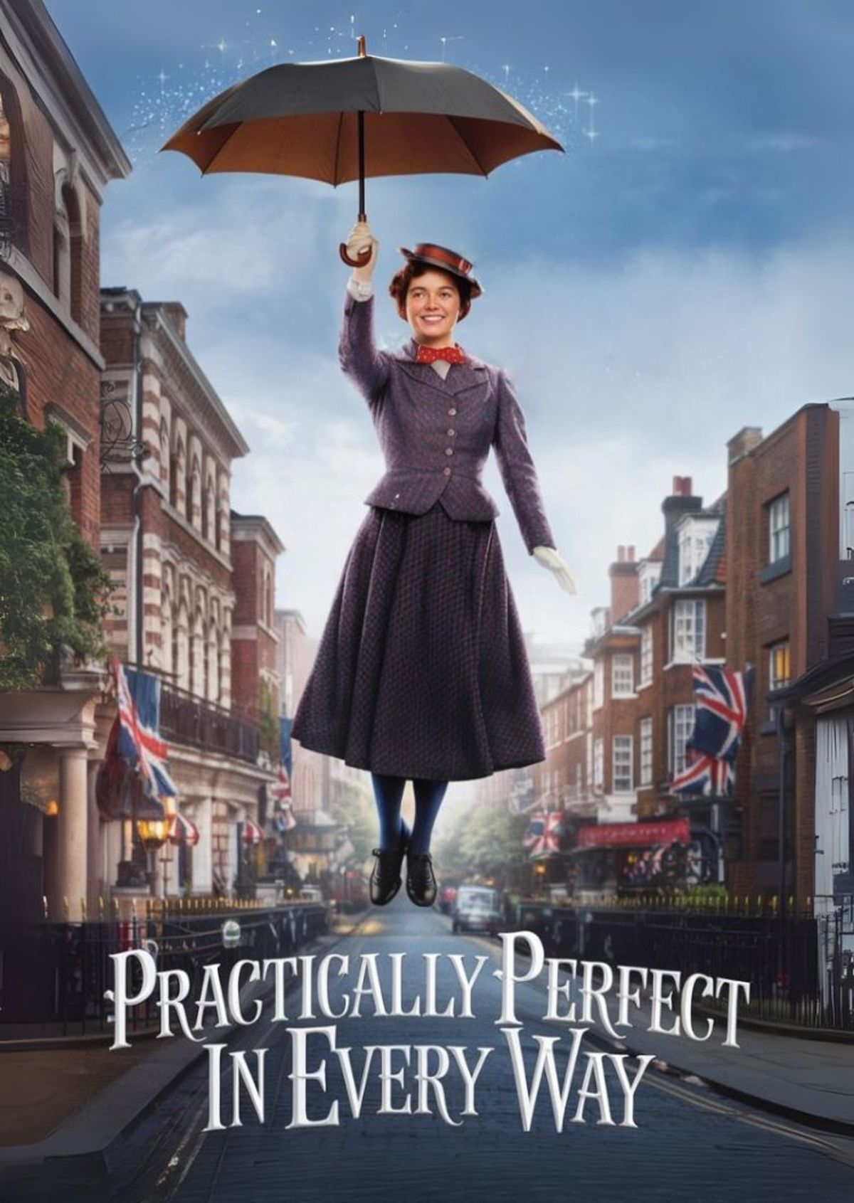 Float into the spotlight by swapping your face onto this charming umbrella-toting nanny scene and steal the show with effortless grace.