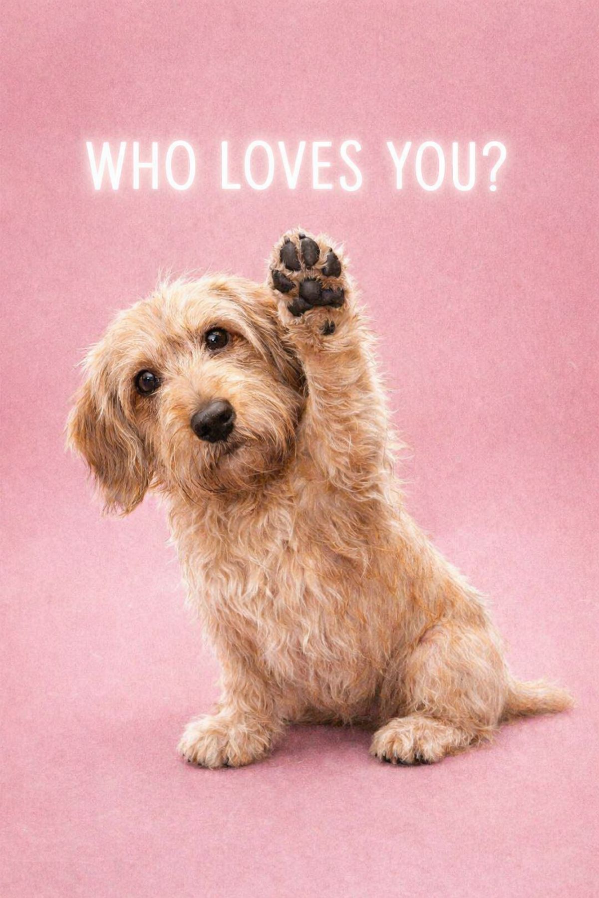 Swap in your pet for this paw-up pink portrait and let them deliver the sweetest answer in the room.