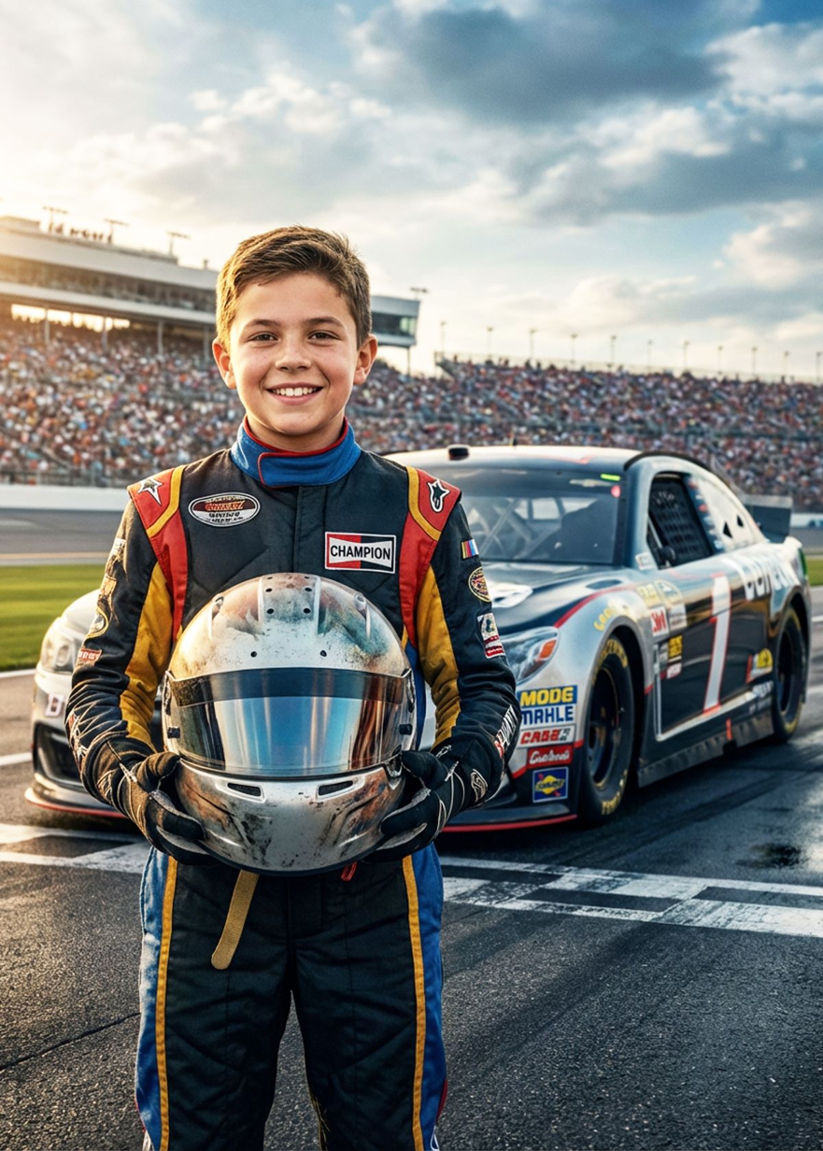 Start the engines. Swap your face onto this fearless young racer and steal the spotlight before the green flag even drops.