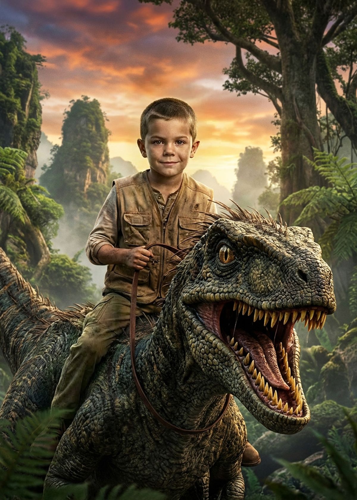 Swap their face onto this fearless dino rider and turn them into the smallest legend in the wildest jungle around.