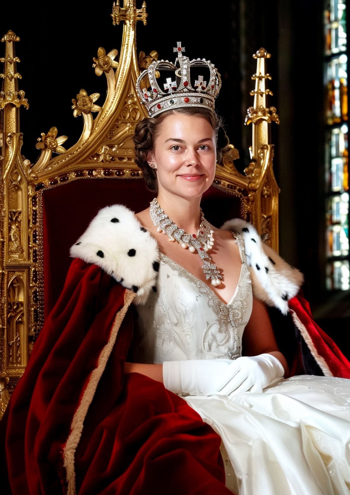 Take your seat at the top. Swap your face onto this glittering coronation portrait and wear the crown like you were born to it.