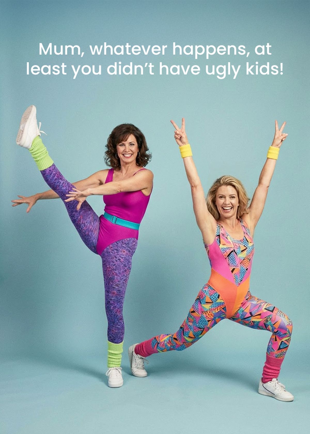 Big hair, bigger laughs. Swap your faces into this retro workout scene and give Mom a compliment she will never forget.
