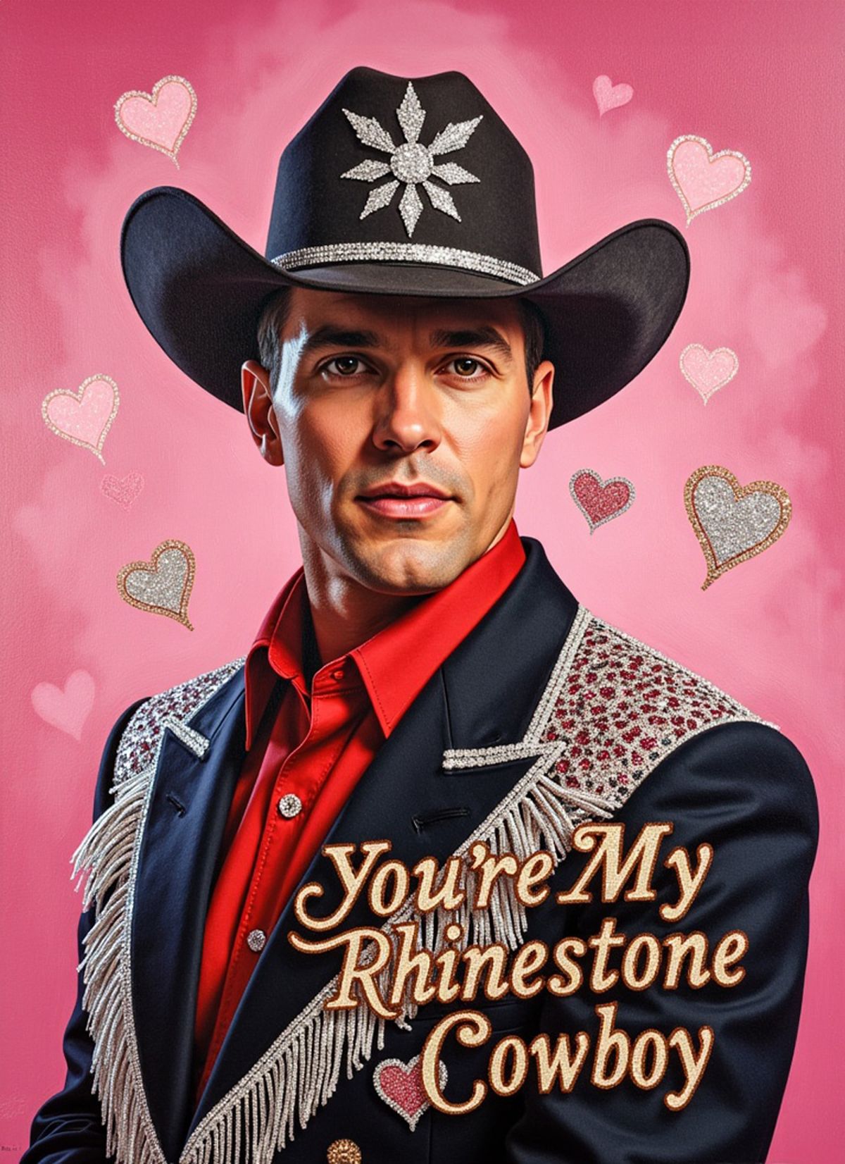 Saddle up, sweetheart. Swap your face onto this dazzling cowboy look and turn up the western charm with a whole lot of sparkle.