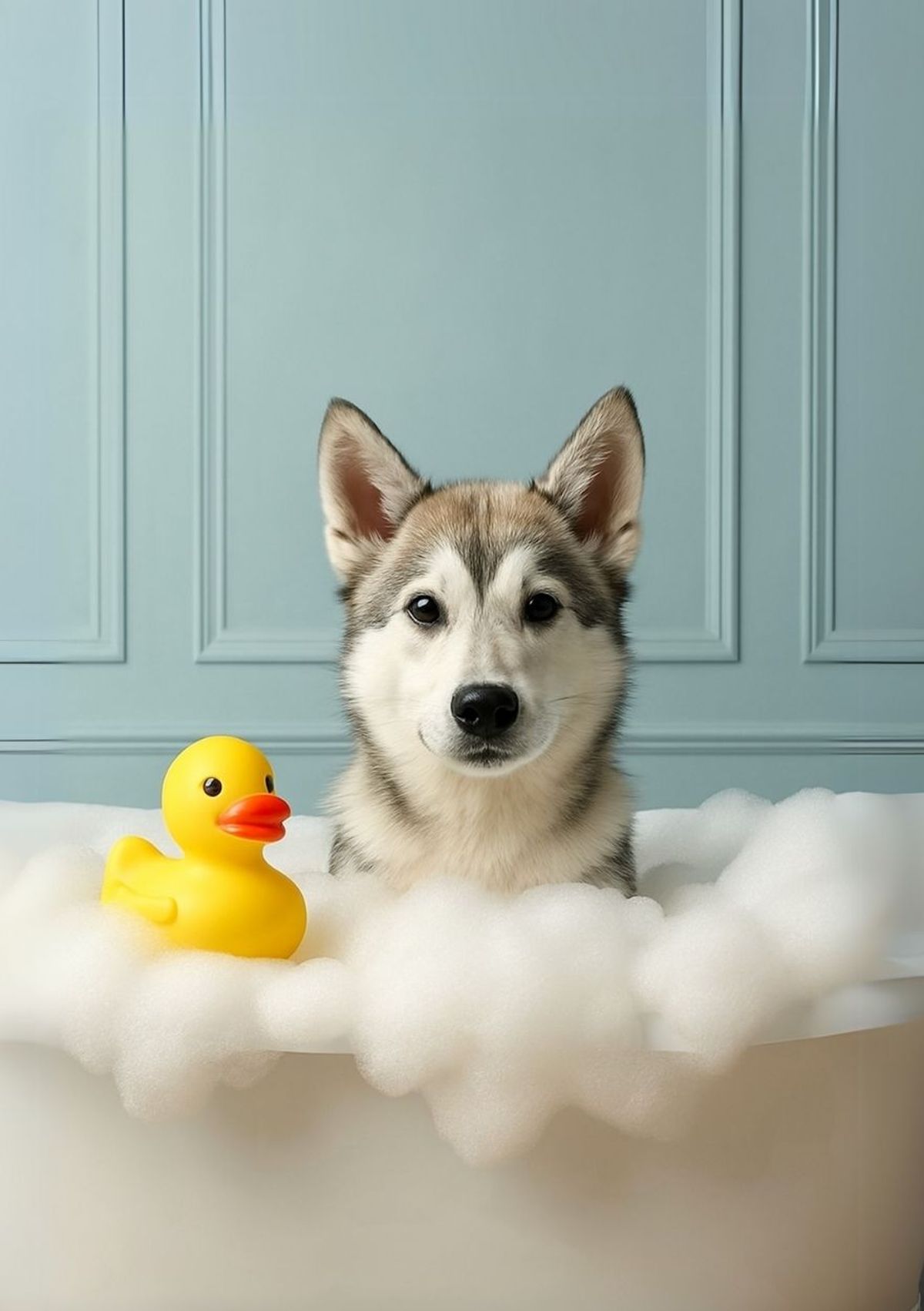 Squeaky clean and shamelessly cute. Swap your pet into this bubbly bath scene and let them steal the show beside the rubber duck.