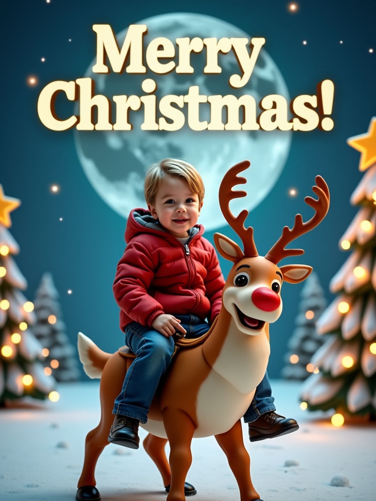 Saddle up for festive magic and swap your face into this moonlit reindeer ride that turns you into the star of Christmas night.