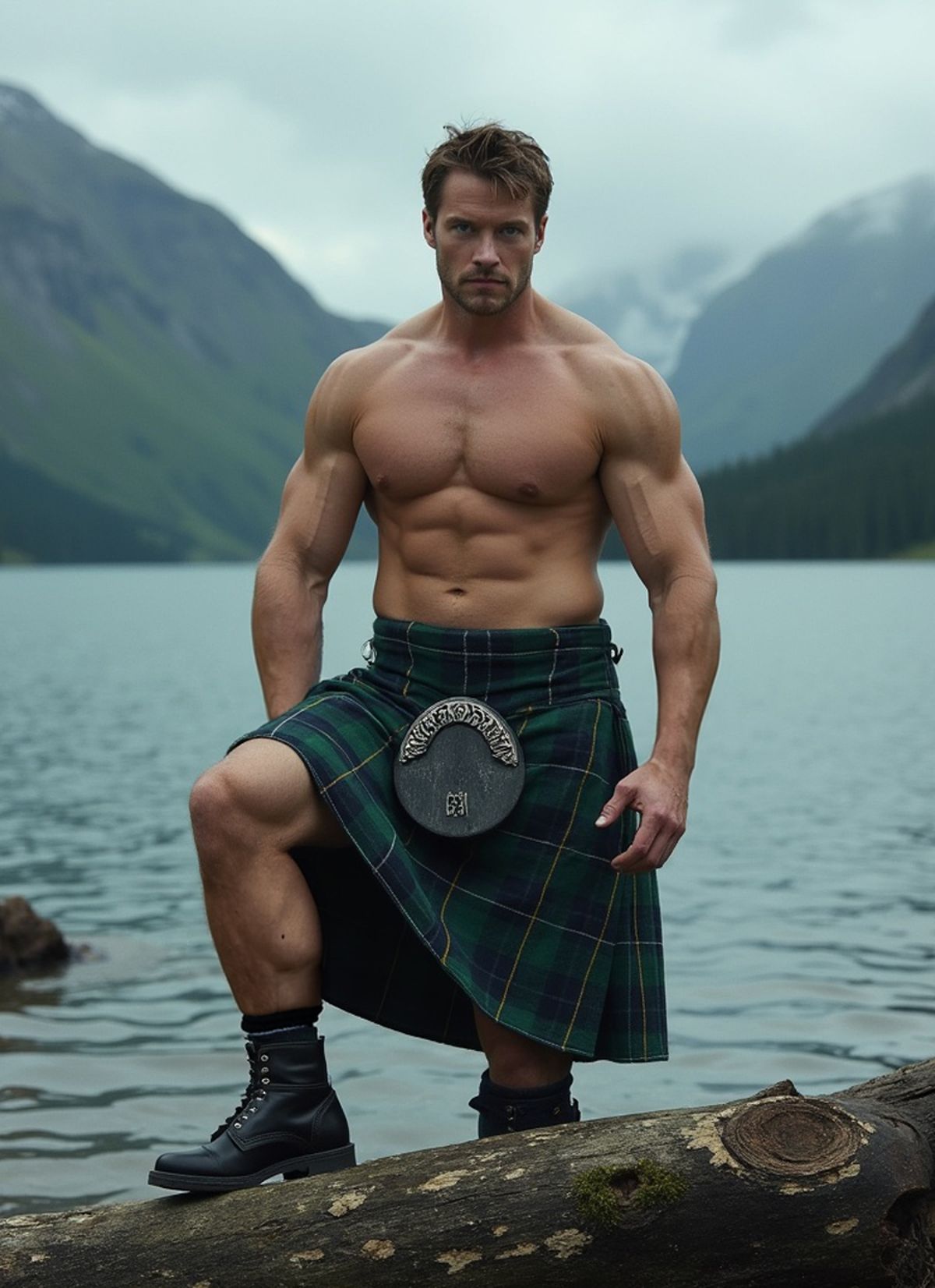 Bring the brawn to the loch by swapping your face onto this kilted mountain hunk and turning rugged charm all the way up.