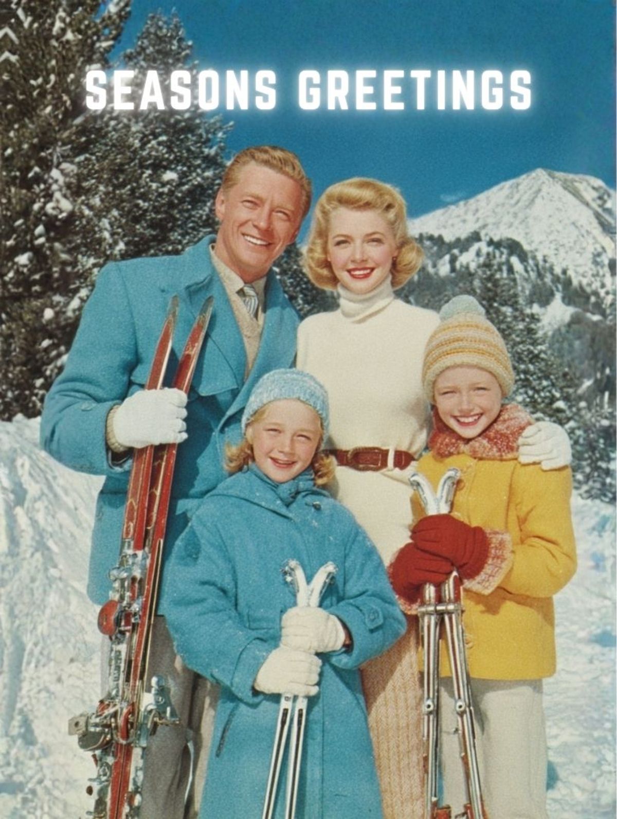 Swap your faces into this vintage ski scene and send season's greetings with enough alpine charm to melt even the frostiest relatives.