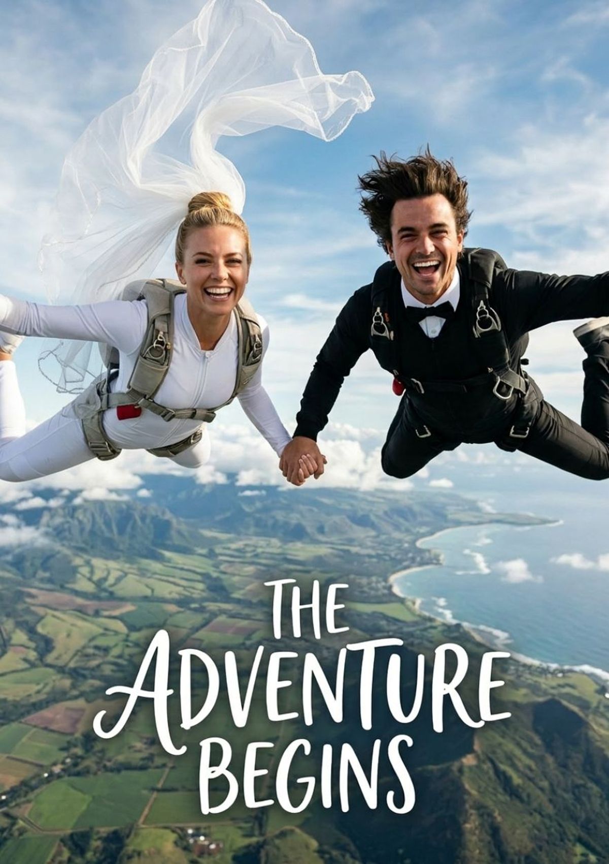 Tie the knot at 10,000 feet. Swap your faces onto this fearless skydiving couple and let your adventure begin in spectacular style.